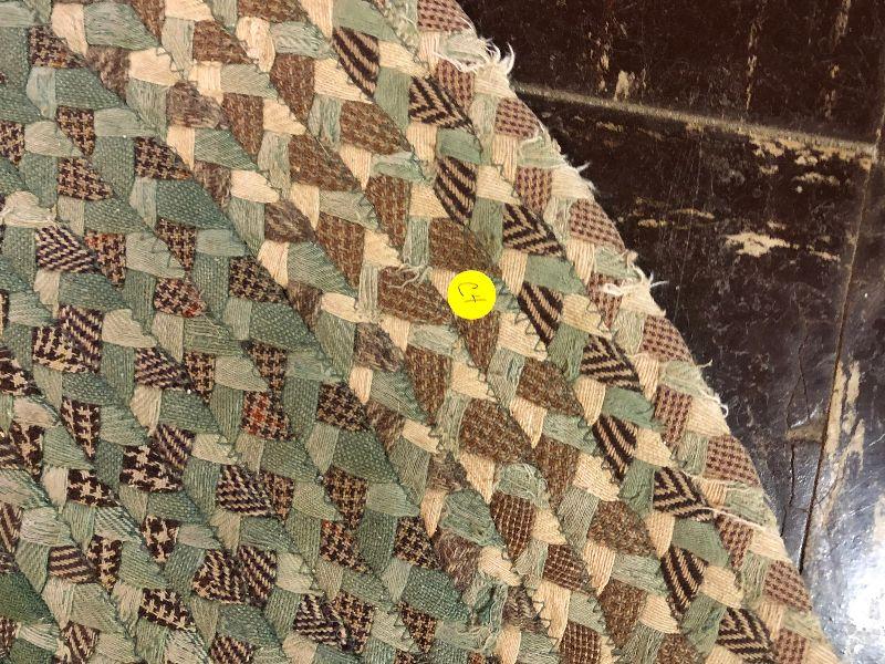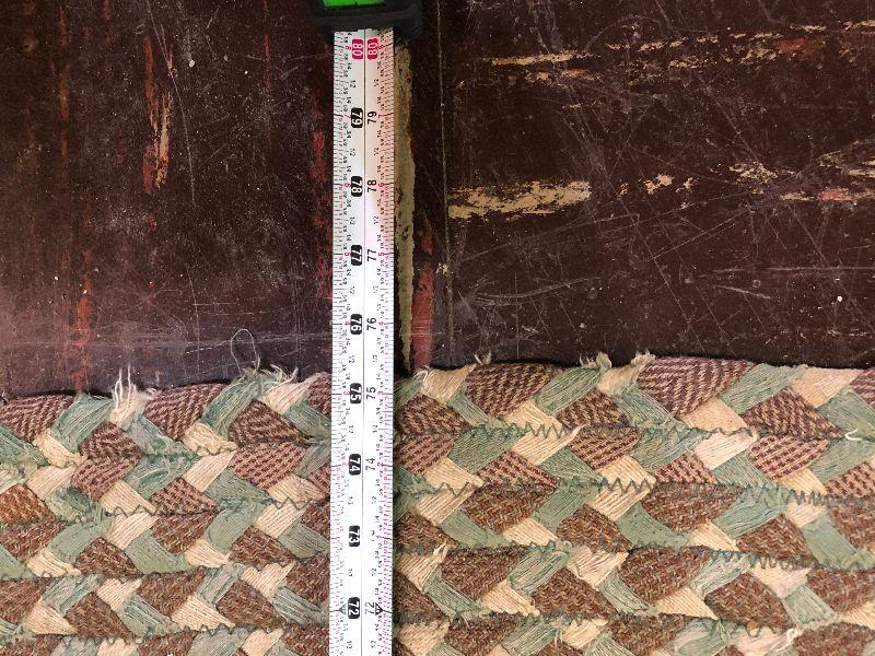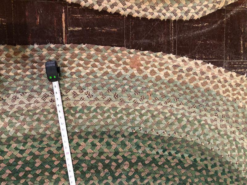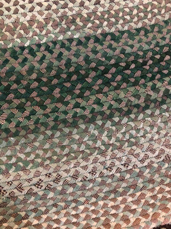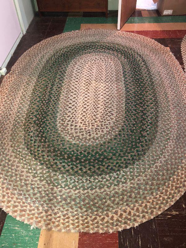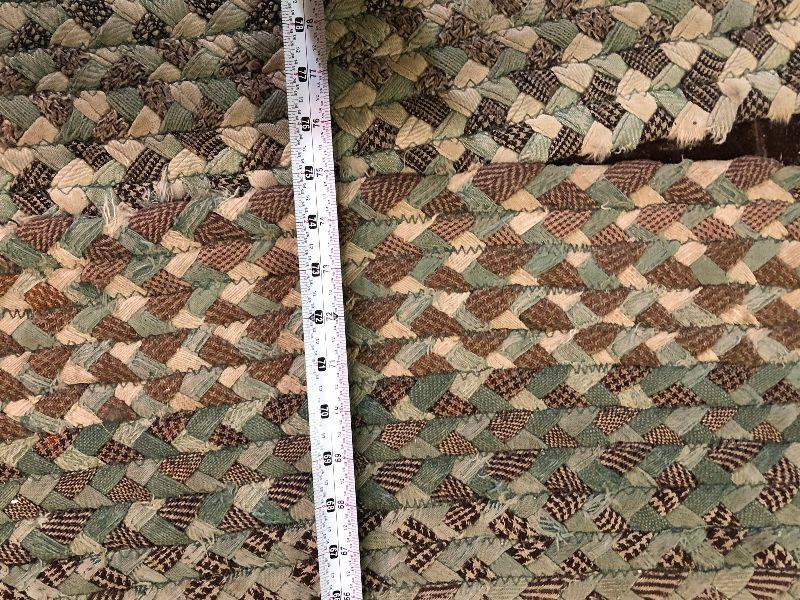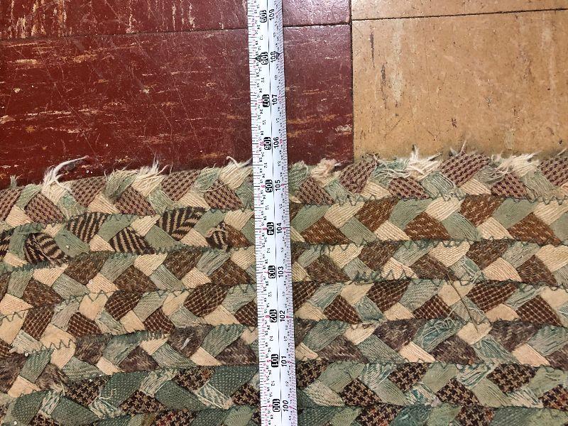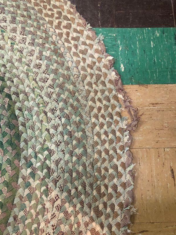 These rugs were typically braided with rags and sewn together. These rugs hold their condition for years with proper care. This rug has slight wear around the edges. I can be resewn or trimmed.