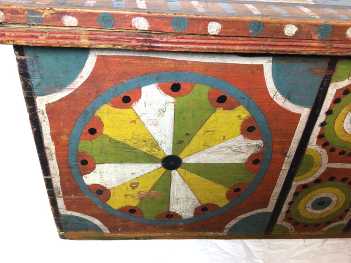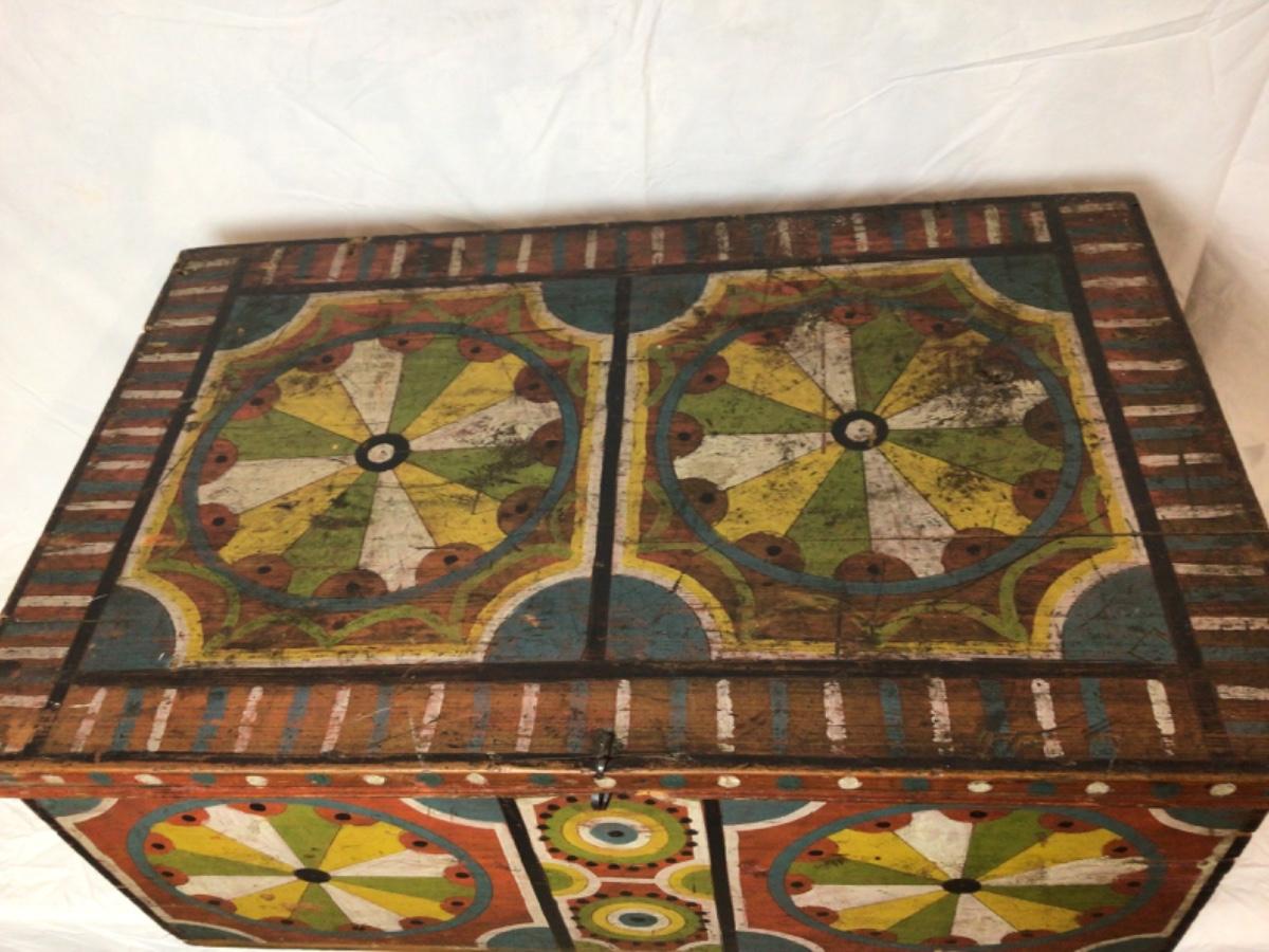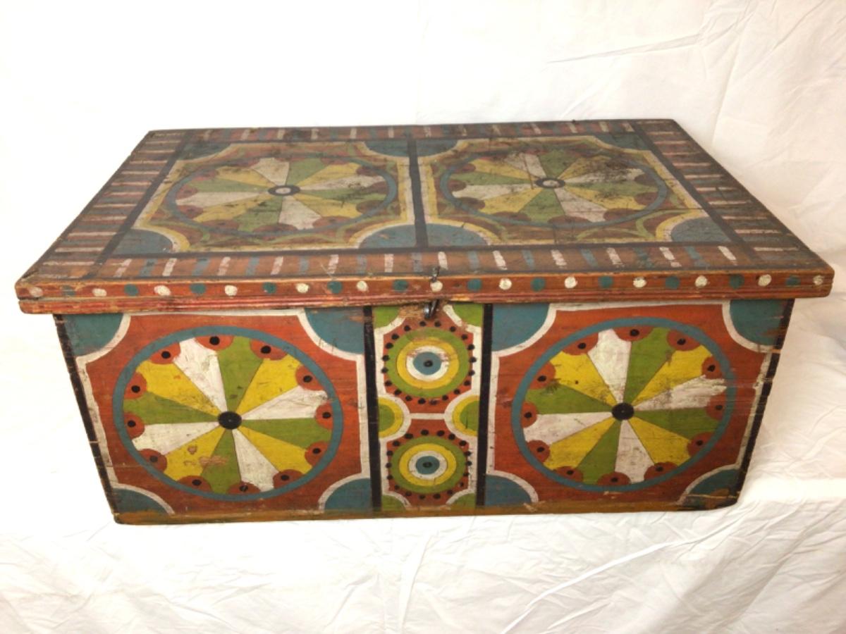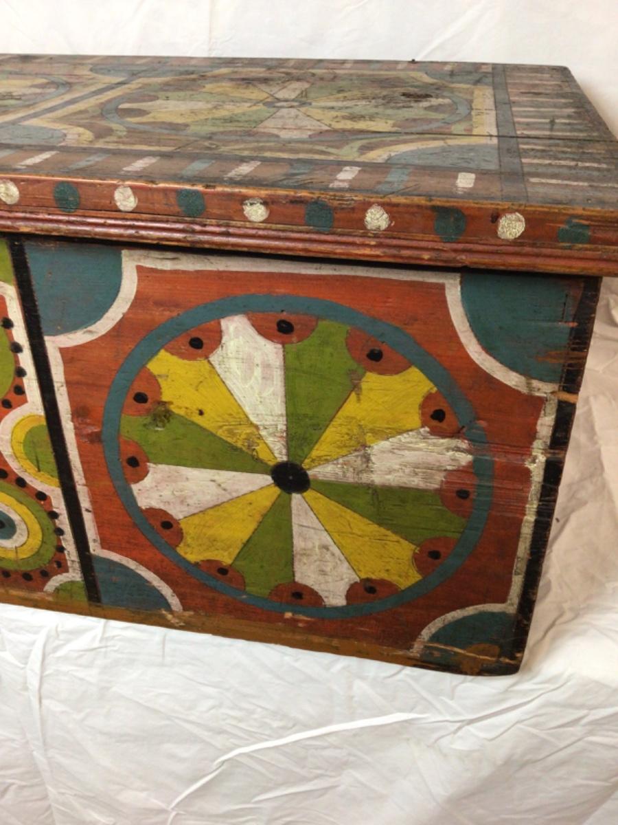 Beautiful 18 century Hand painted Russian Chest with pinwheel design