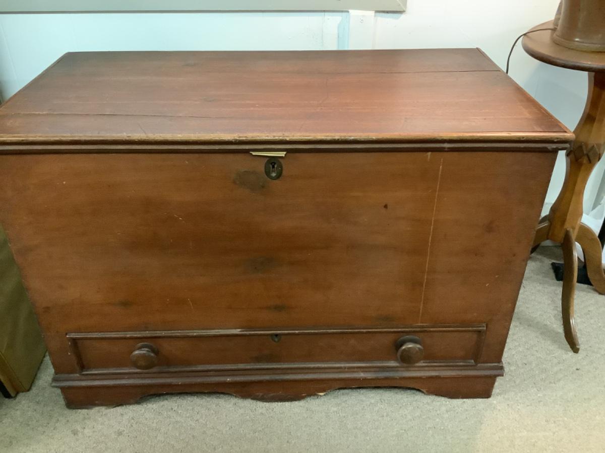 This chest has a compartment inside and measures 39” w x 28.25” d x 26.5” high