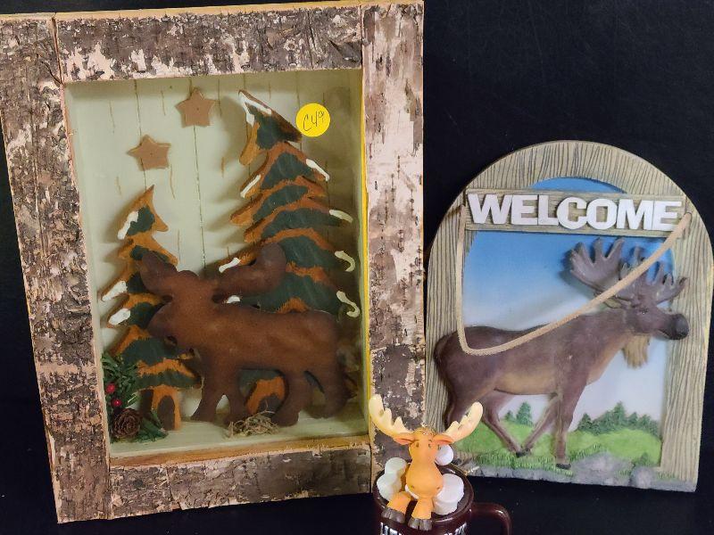 Fun lot of Moose Decor. Please see pics for sizing and condition