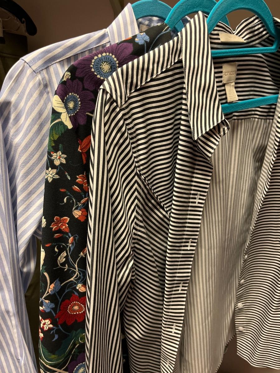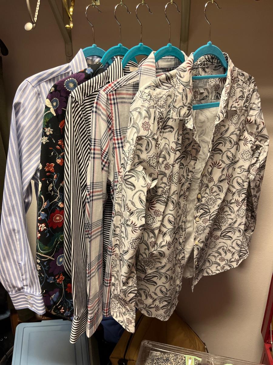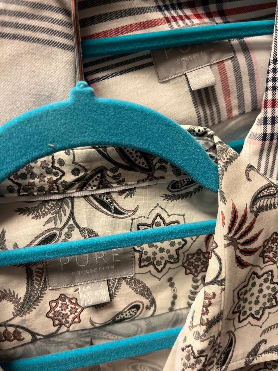 C49- Chicos shirts (3) size 1, Oure shirts (2) size 14
