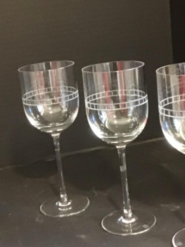 Set of 8 etched wine glasses signed RM Richard Meier for Swid Powell design