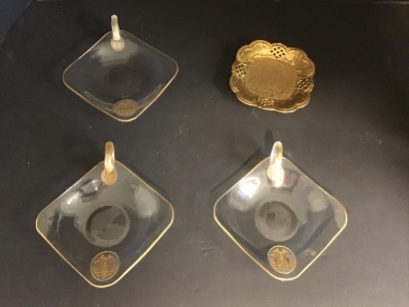 Bavaria Gold China Plate and 3 Glass Nappy’s with gold edge