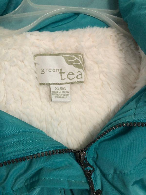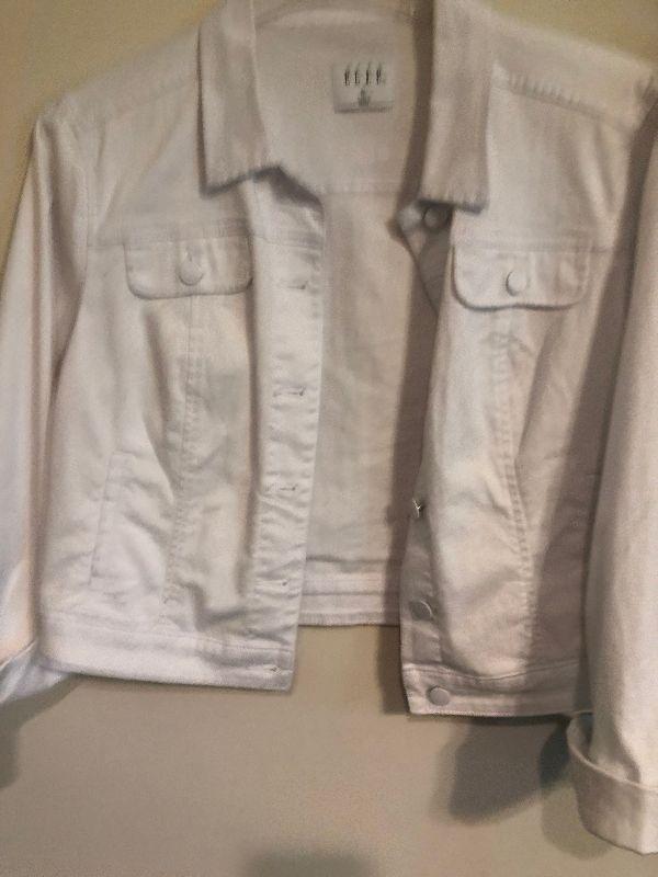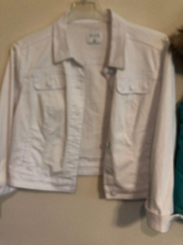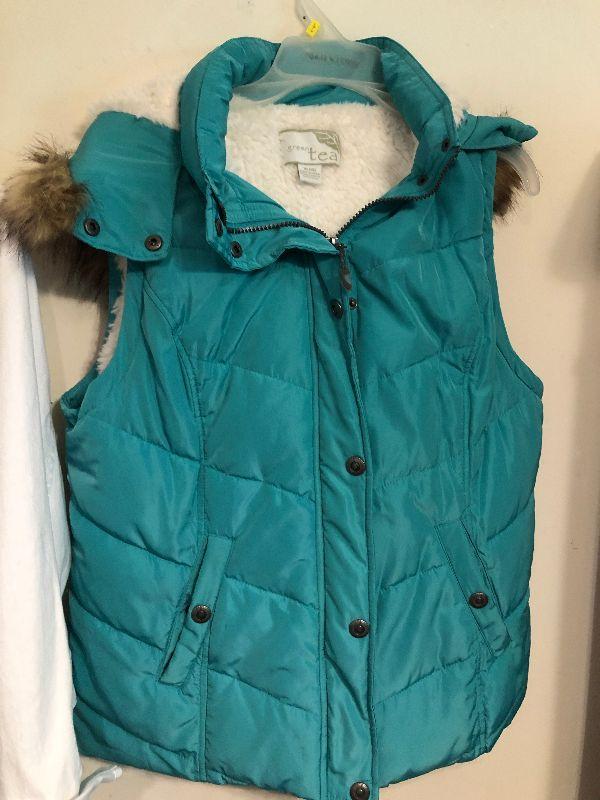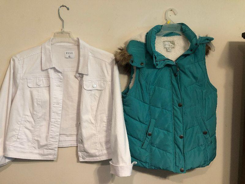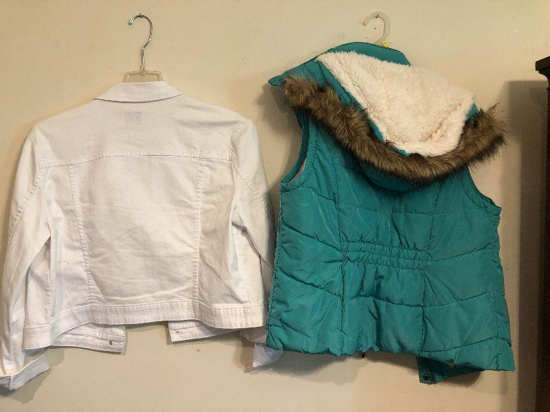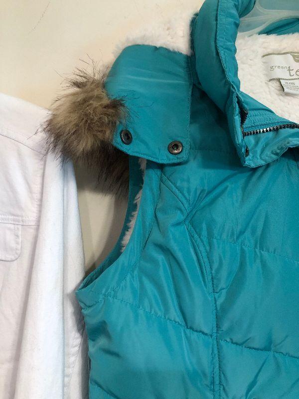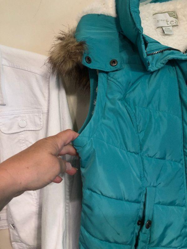 C5: White Jean Jacket and Teal Vest with Fuzzy Hood
