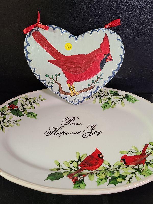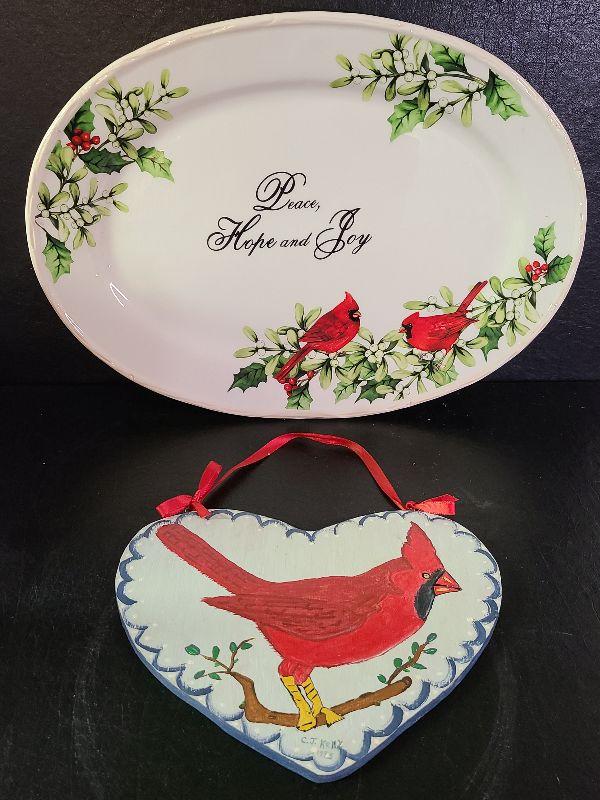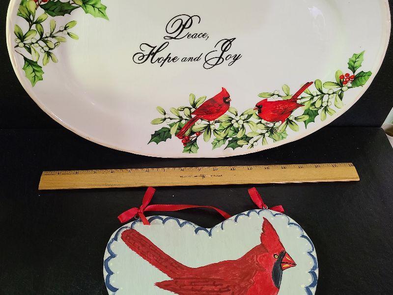 Beautiful Cardinal Platter and handmade hanging plaque. Please see pics for sizing and condition