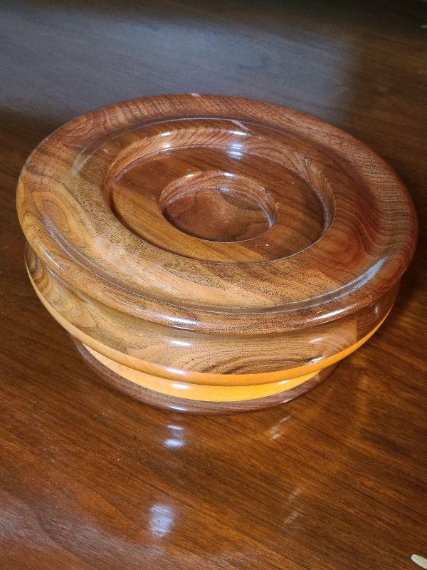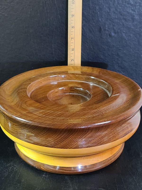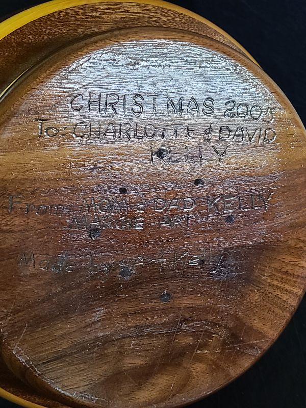 This was handmade and is gorgeous in person! Very large. Signed on bottom, but for a fresh look, you can sand. Please see pics for sizing and condition