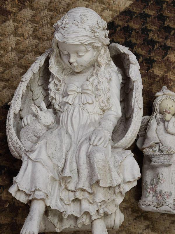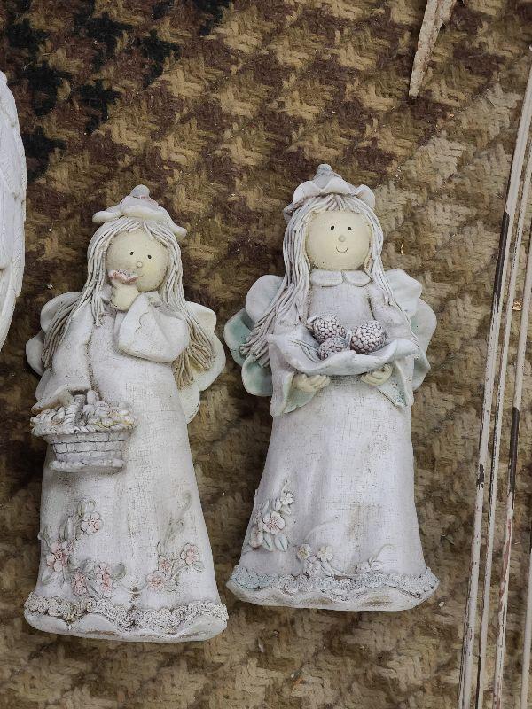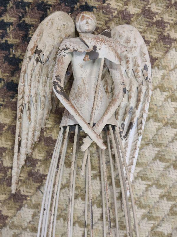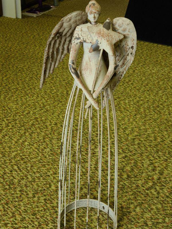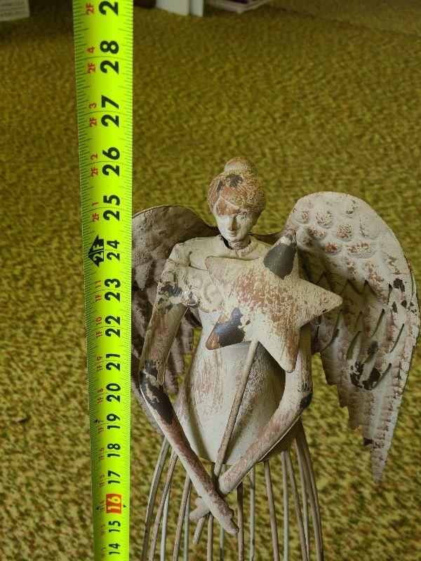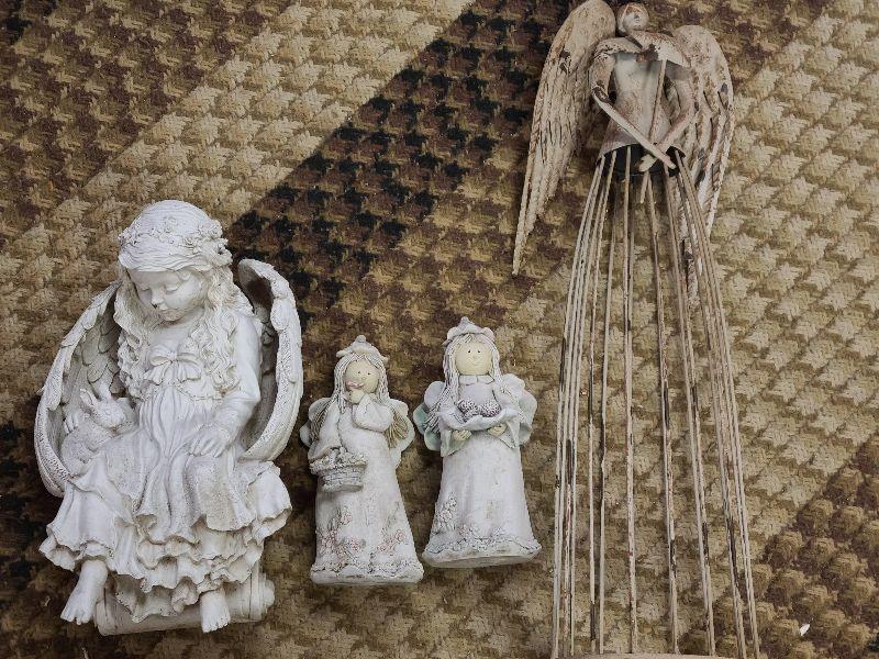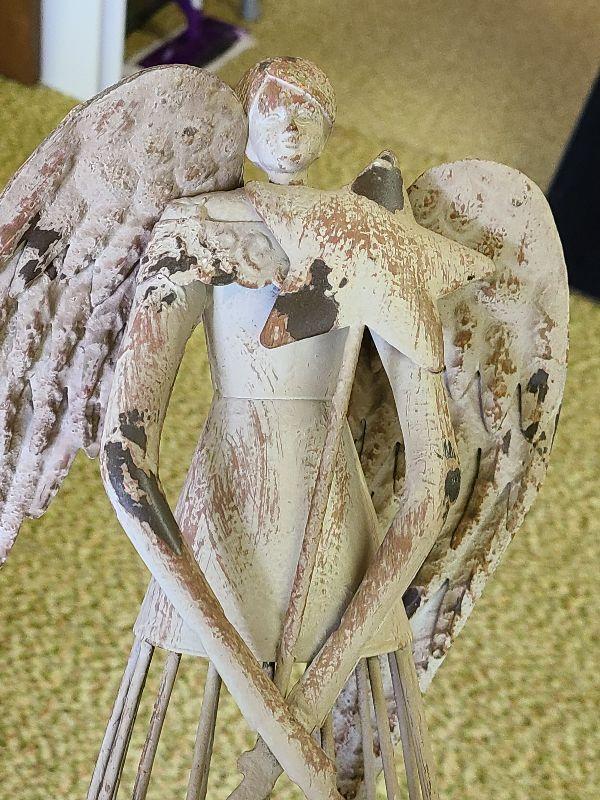 Tall, metal angel with star, angel with rabbit, and angels with gifts. Wear noted. Please see all pictures for exact contents of the lot, condition of the items, and if measurements if taken. Thank you for looking and have fun bidding.