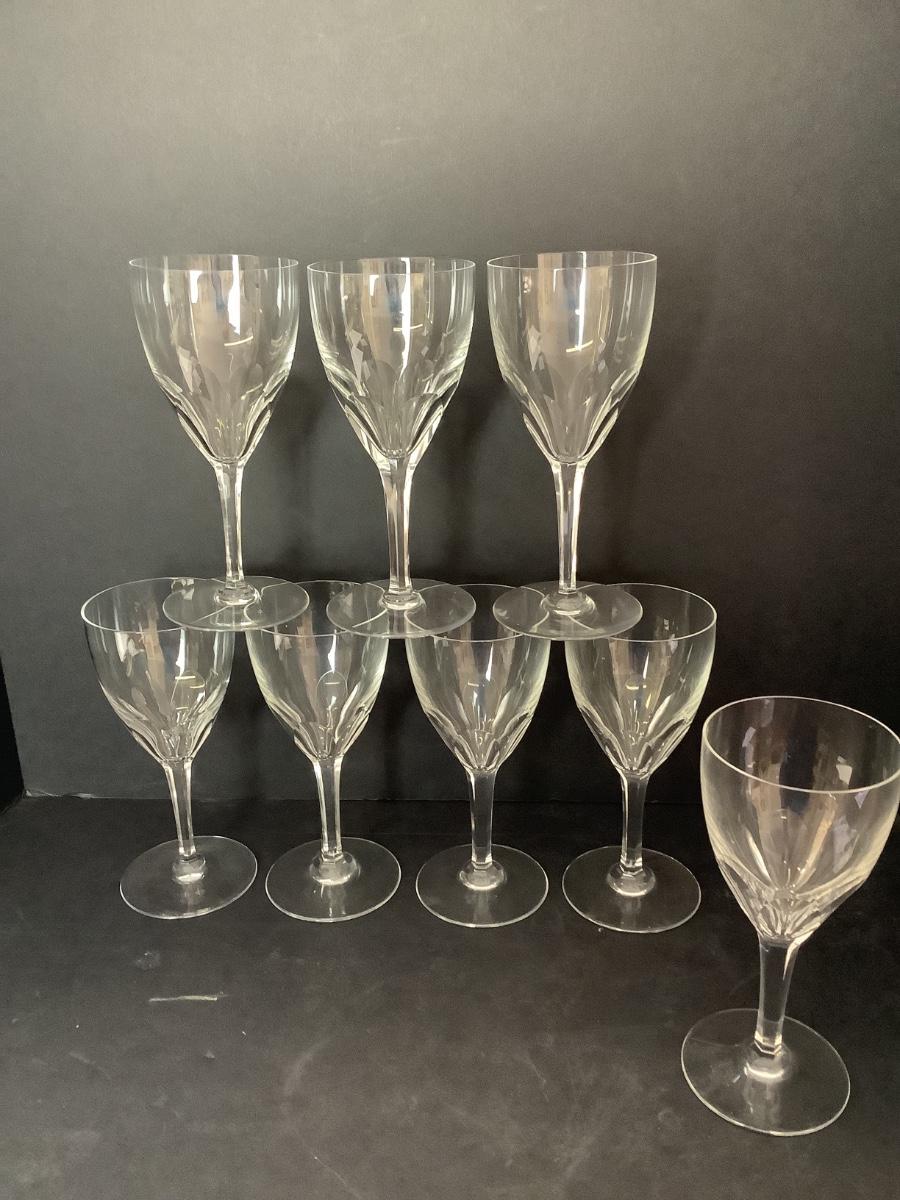 This set a Genova Pattern. Baccarat Water goblets. All glasses are 7 and 1/2 inches in height. Set of 8.