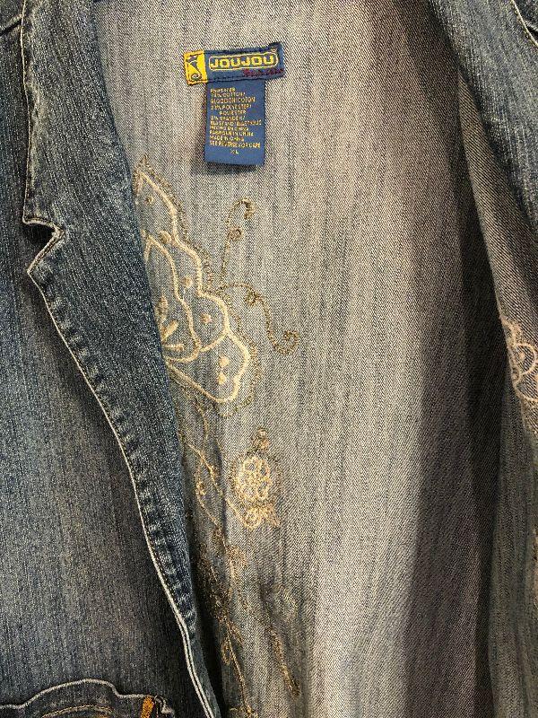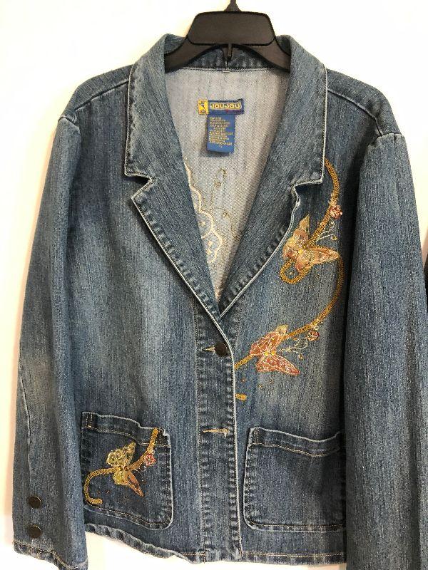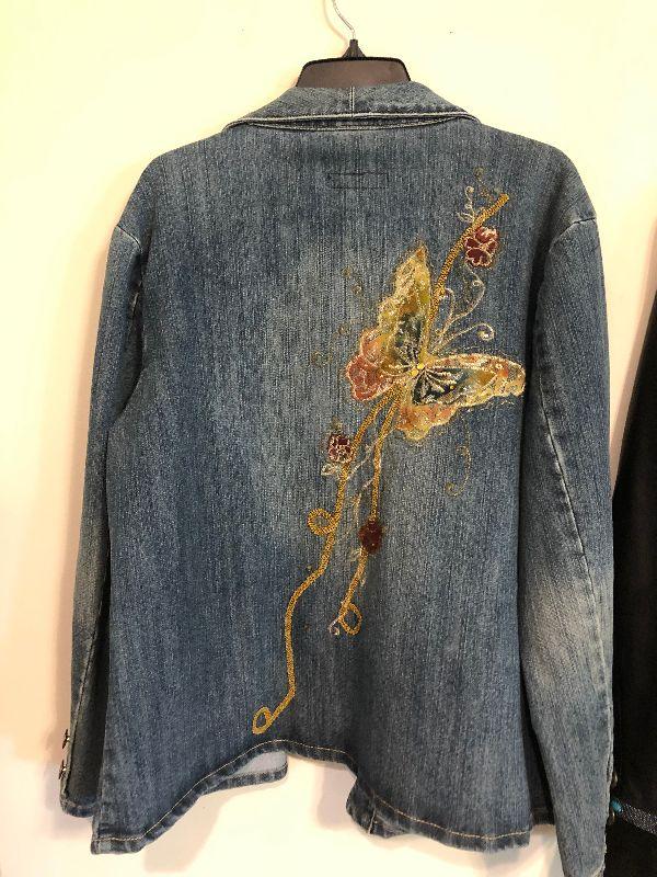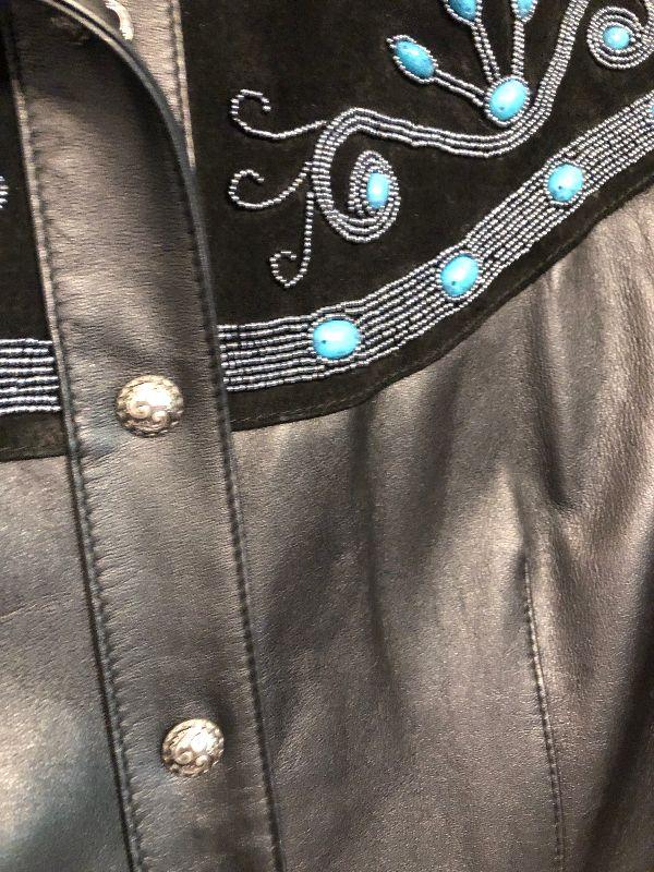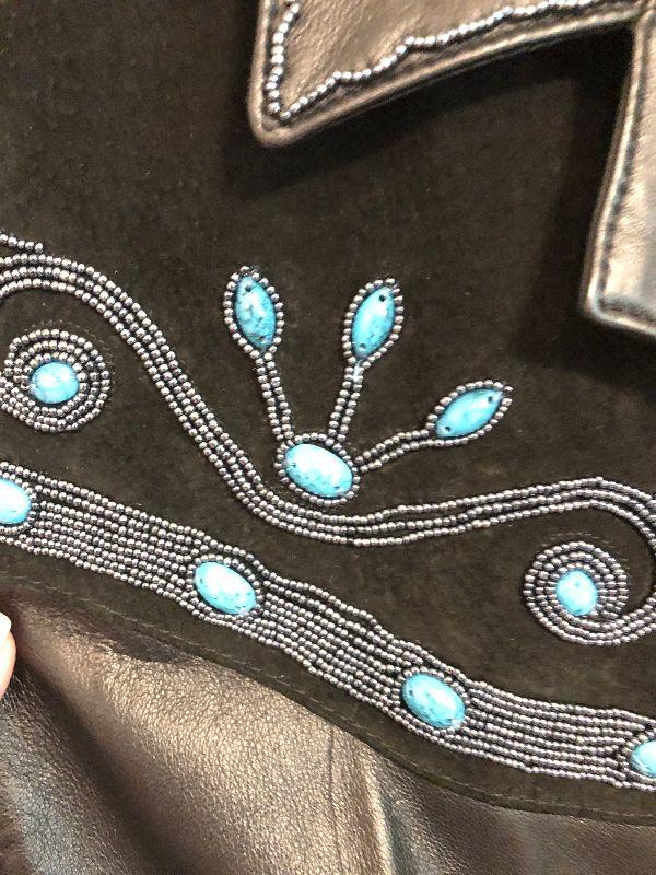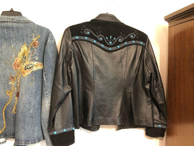C7: Beautiful Leather Jacket with Turquois Accents with Jean Jacket