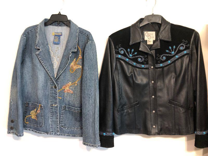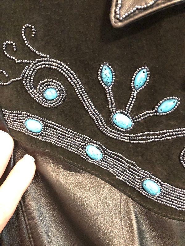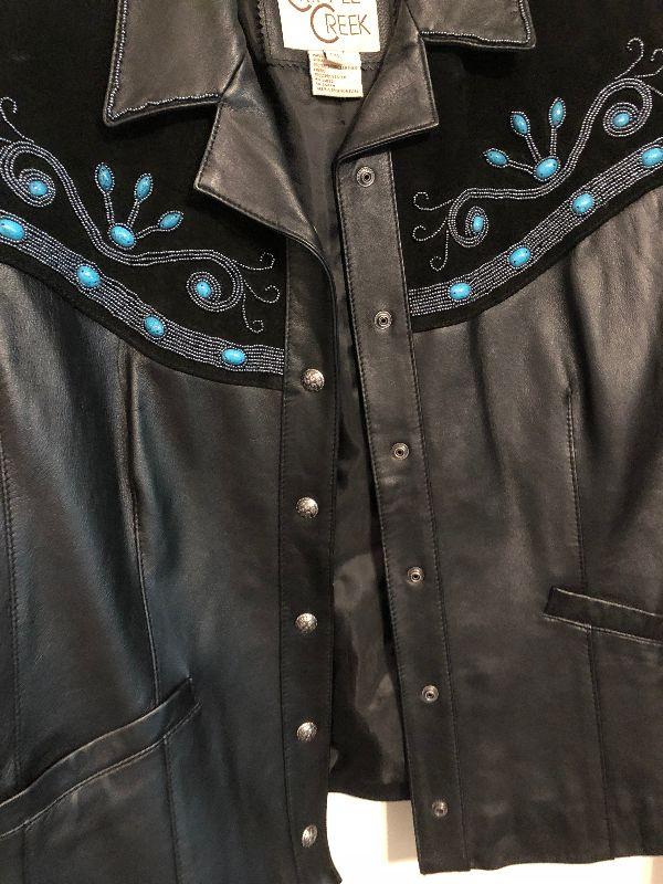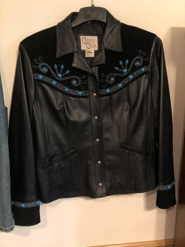 Beautiful Cripple Creek Leather Jacket with Turquois Accents with Jean Jacket