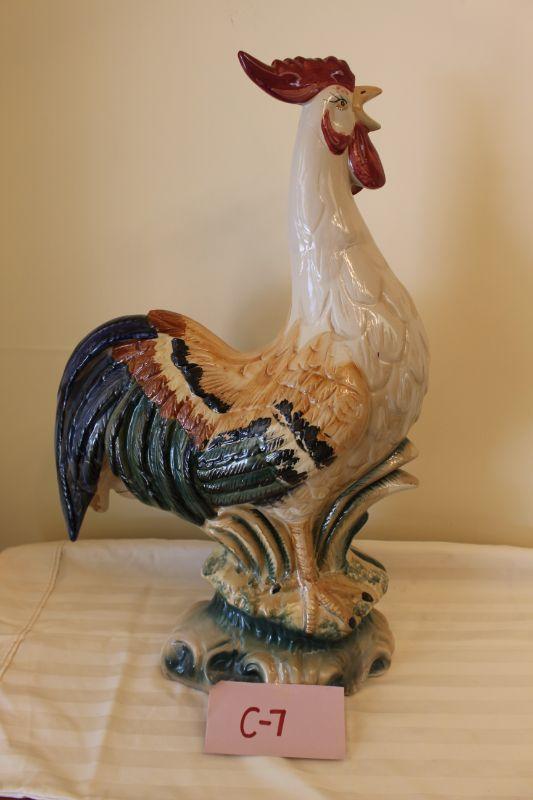 C-7 Large Ceramic Green Tail Farmhouse Rooster -AS IS