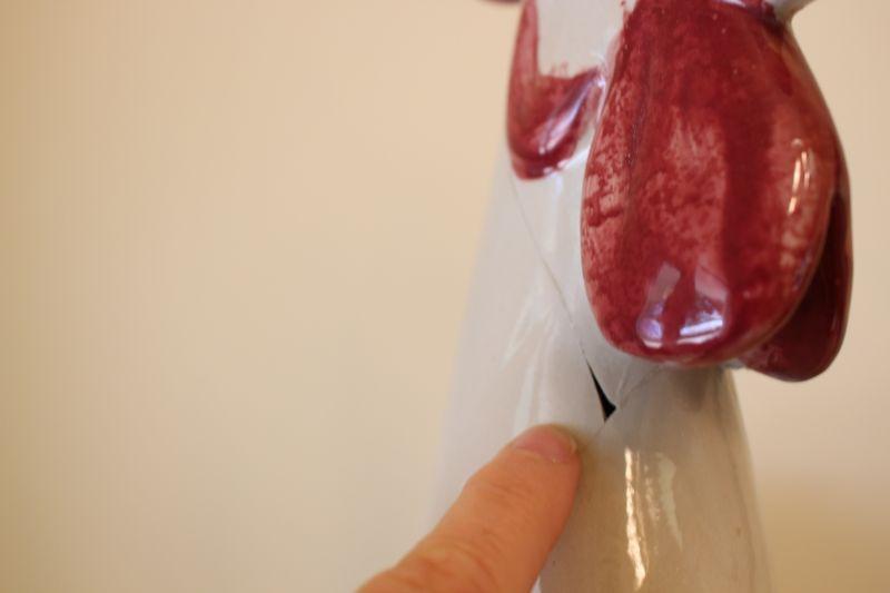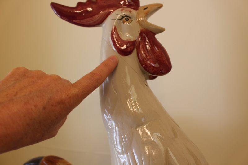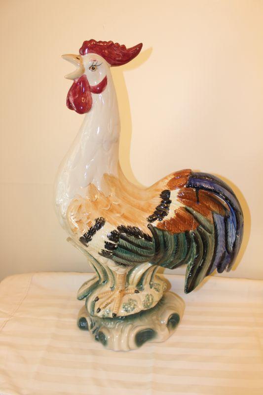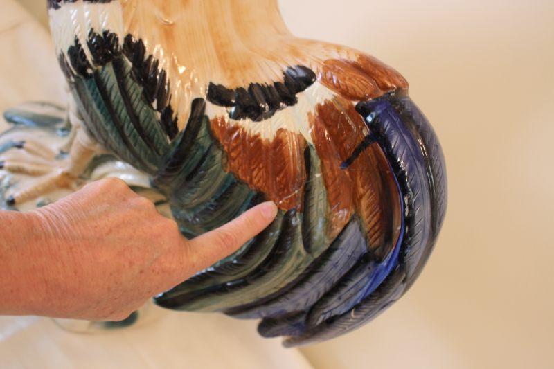 EXTRA Large Ceramic Farmhouse Greentail Rooster -this rooster has been repaired years ago. The repairs I see are on his neck and tail.