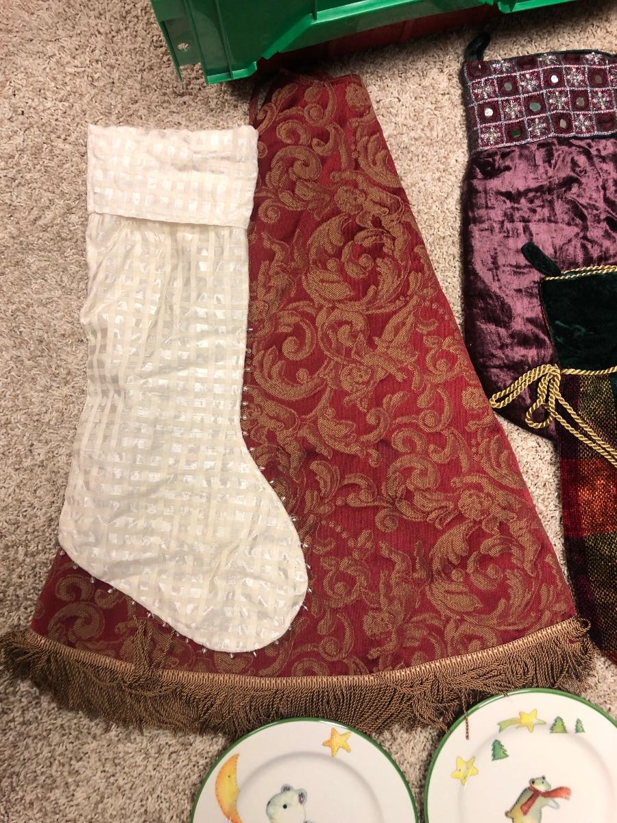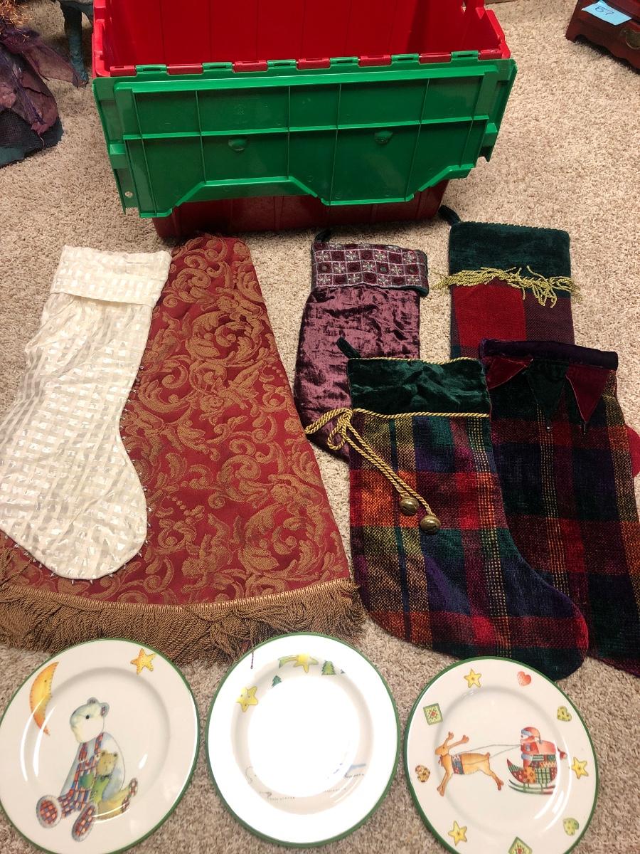 C7- Tote with 5 Stockings, tree skirt, 3 plates (Italy)