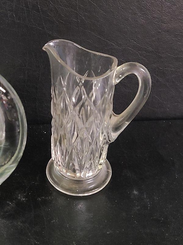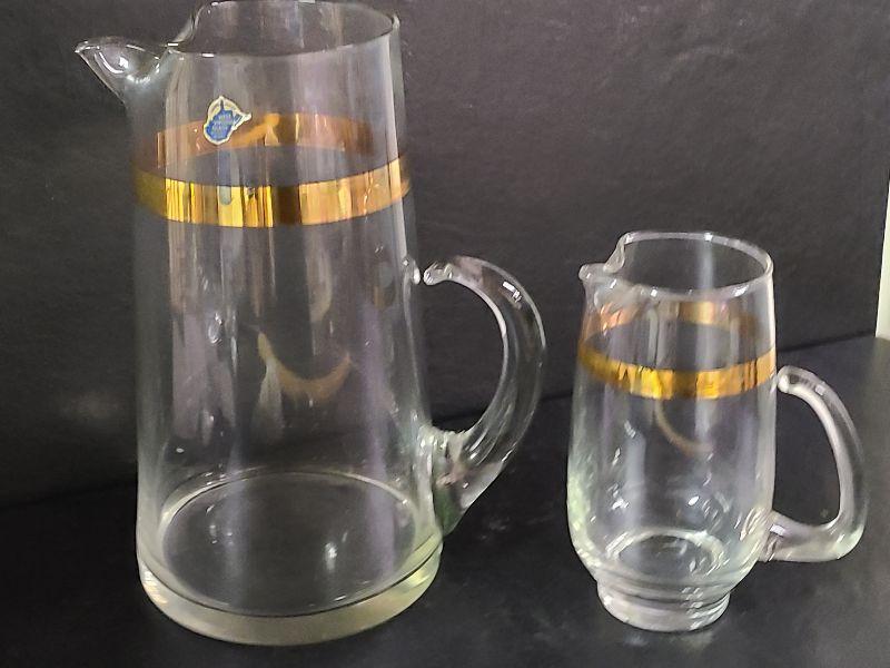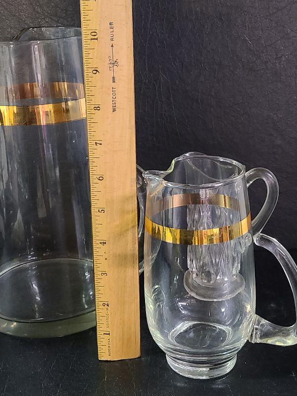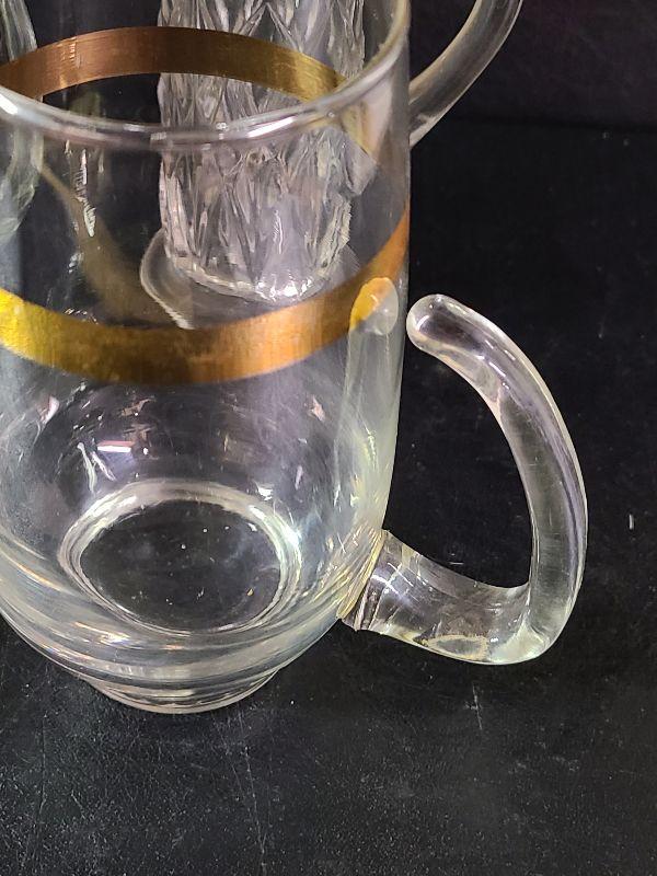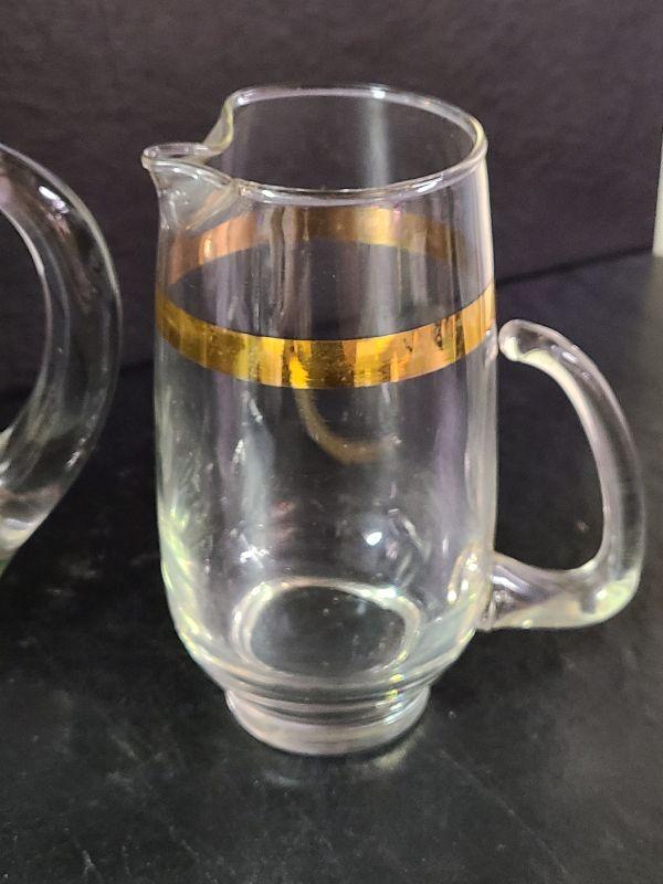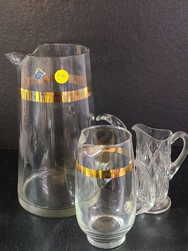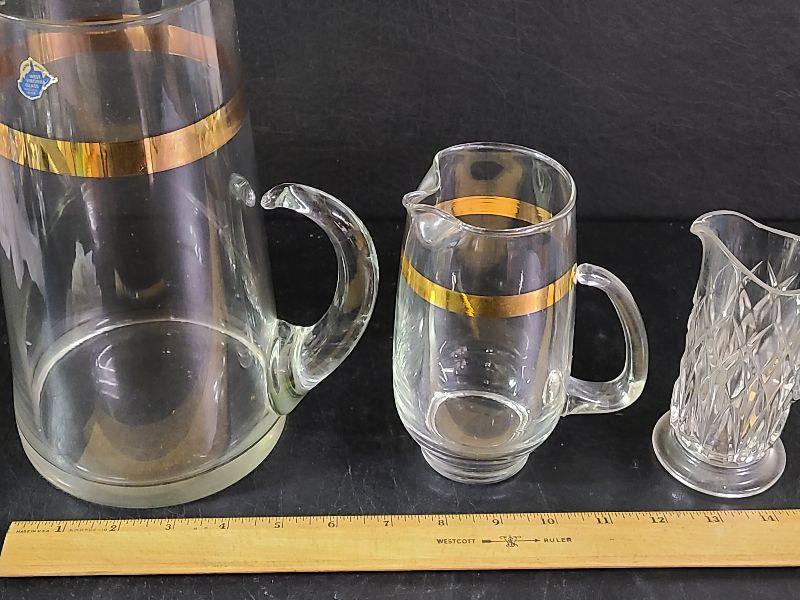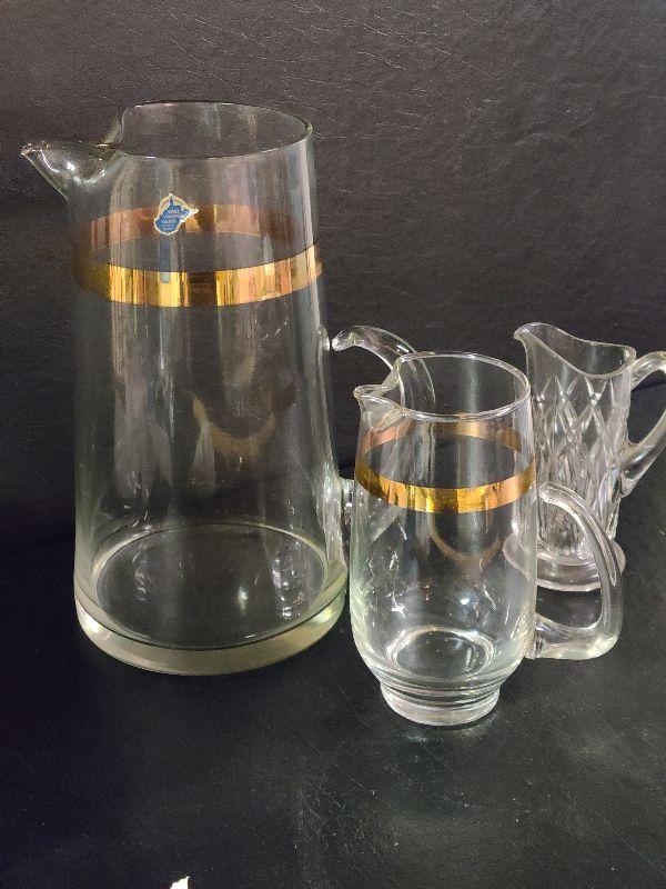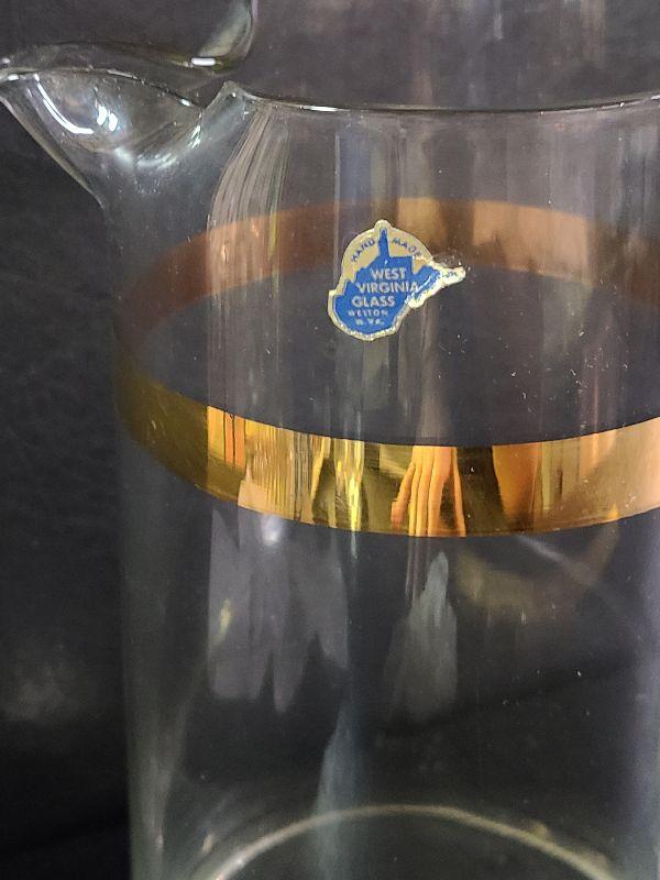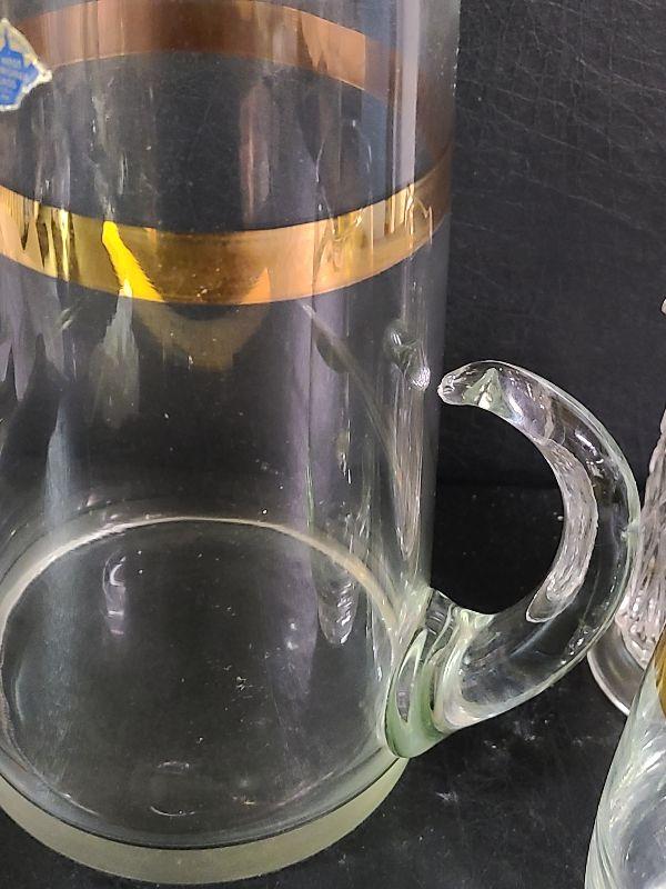 Nice lot of Barware, unique handles! The tallest is marked West Virginia Glass Company. Please see pics for sizing and condition