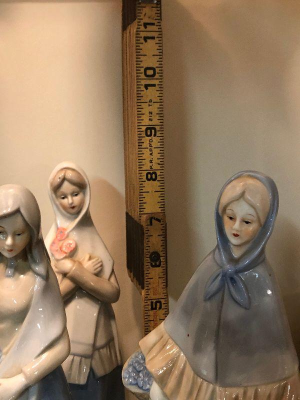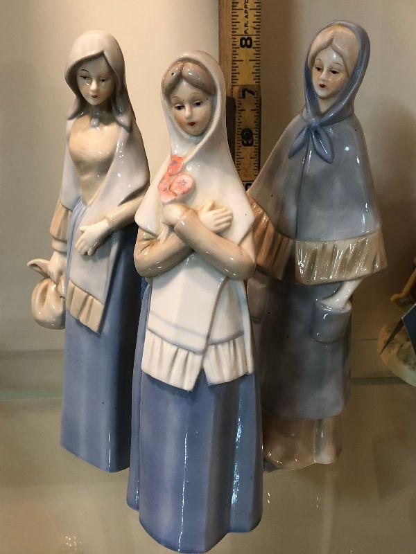 Three lady figurines in the style of Lladro. No chips.