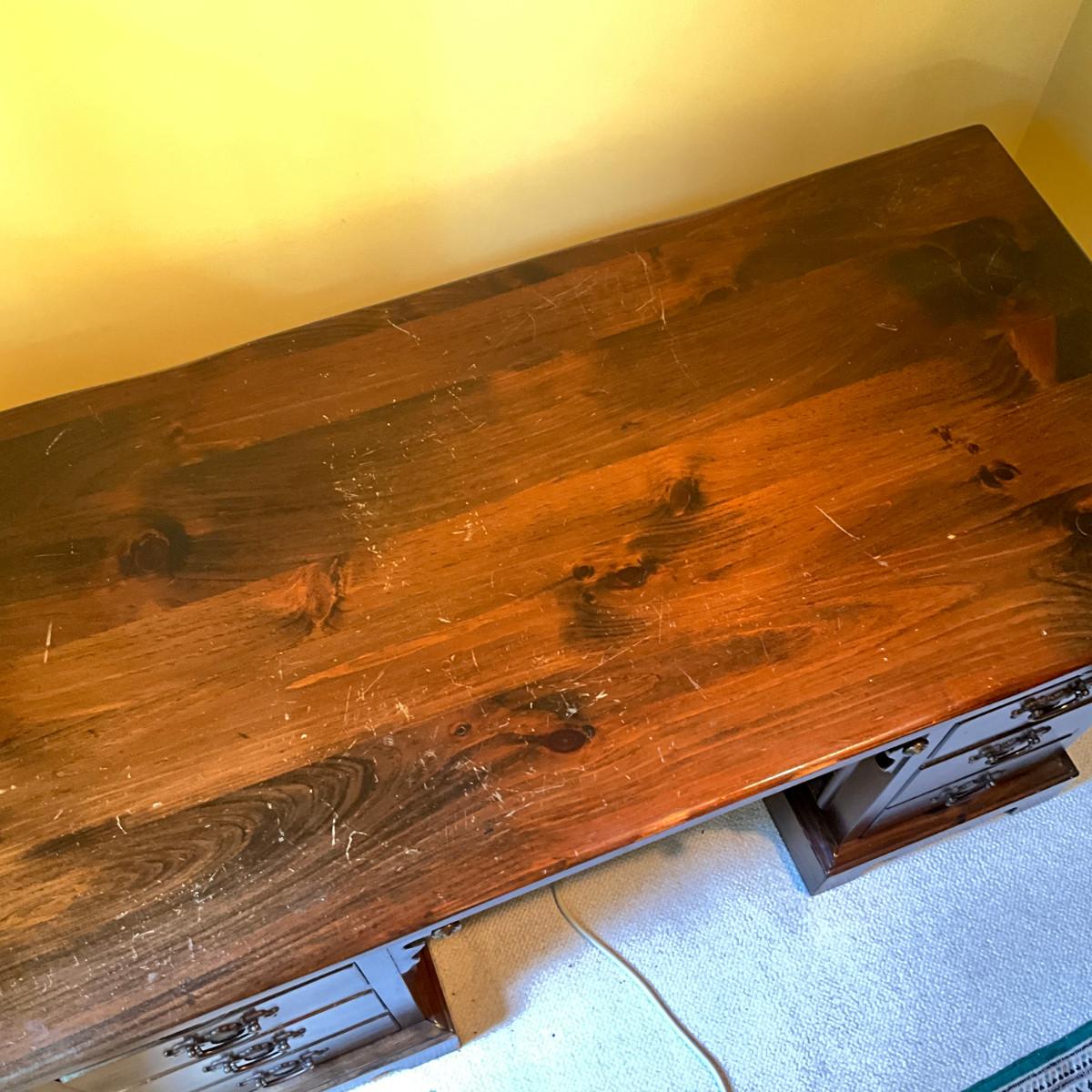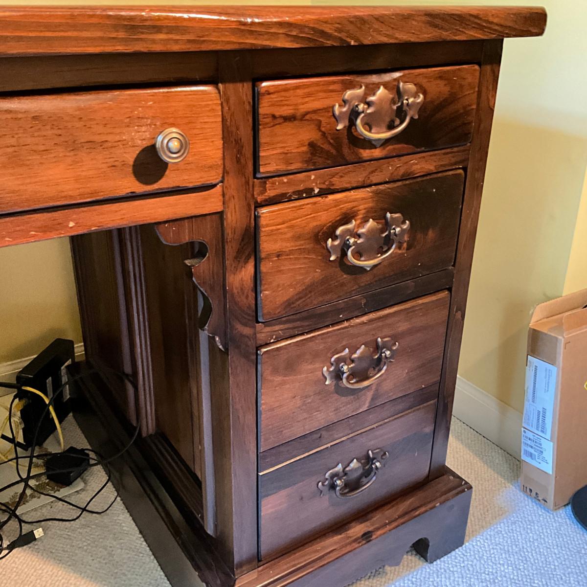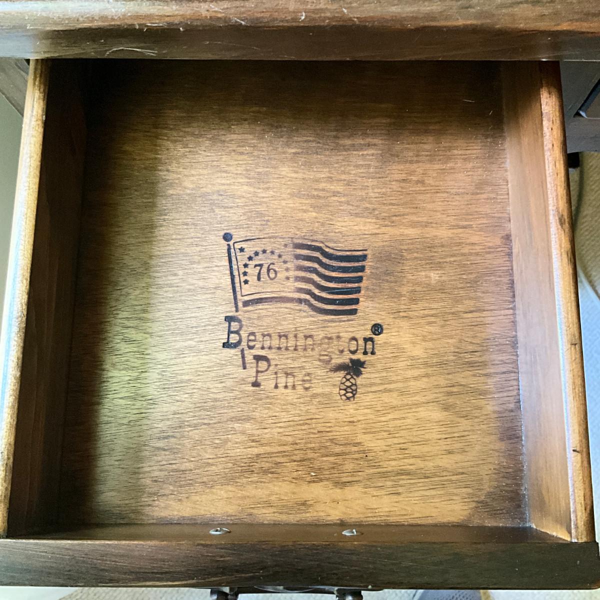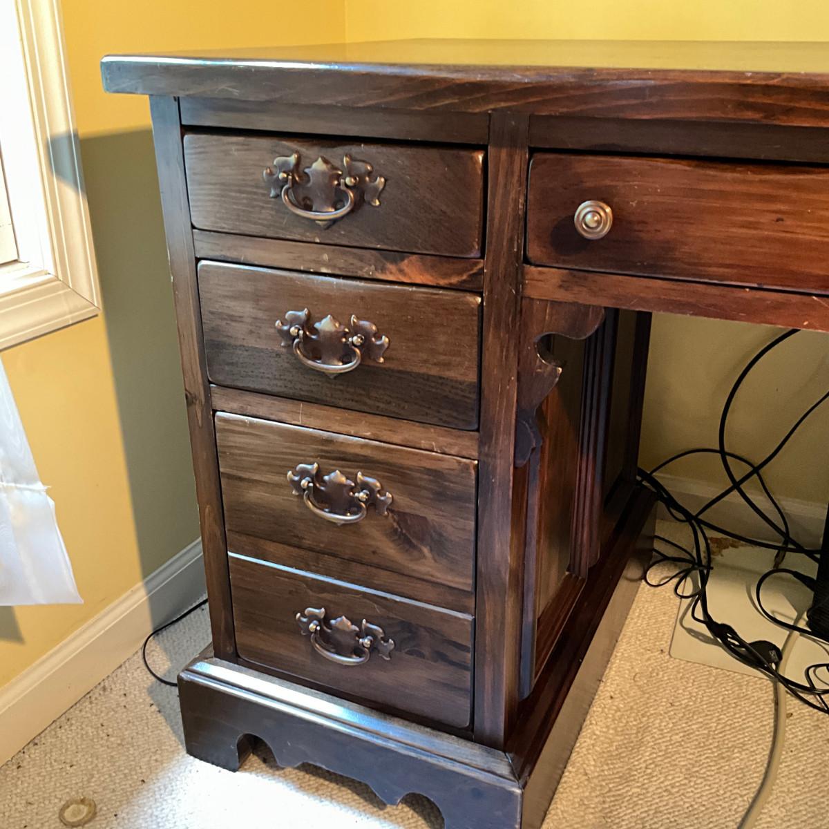 C780 Vintage Bennington Pine Colonial Style Knee Hole Desk With Matching Chair