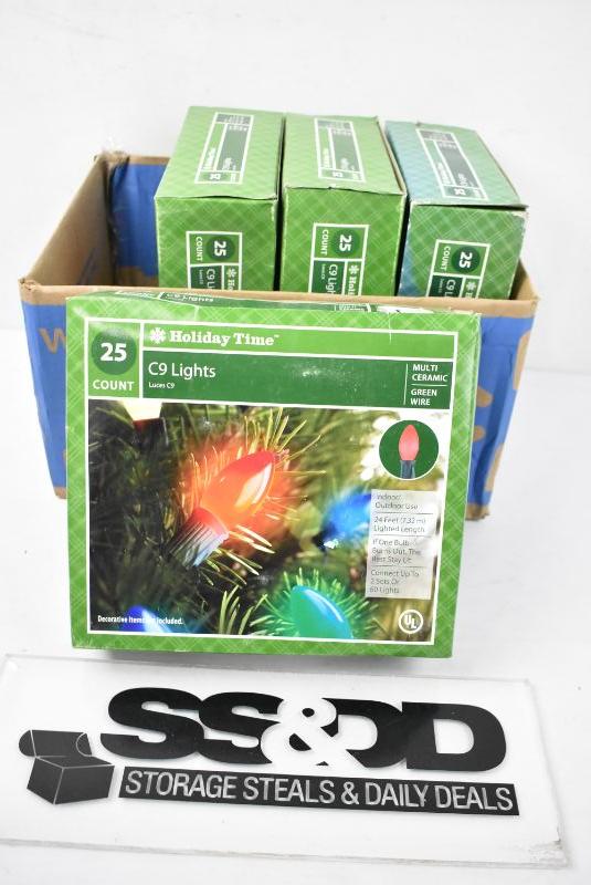 C9 Holiday Lights, 4 boxes, 25 count each. Untested/As is