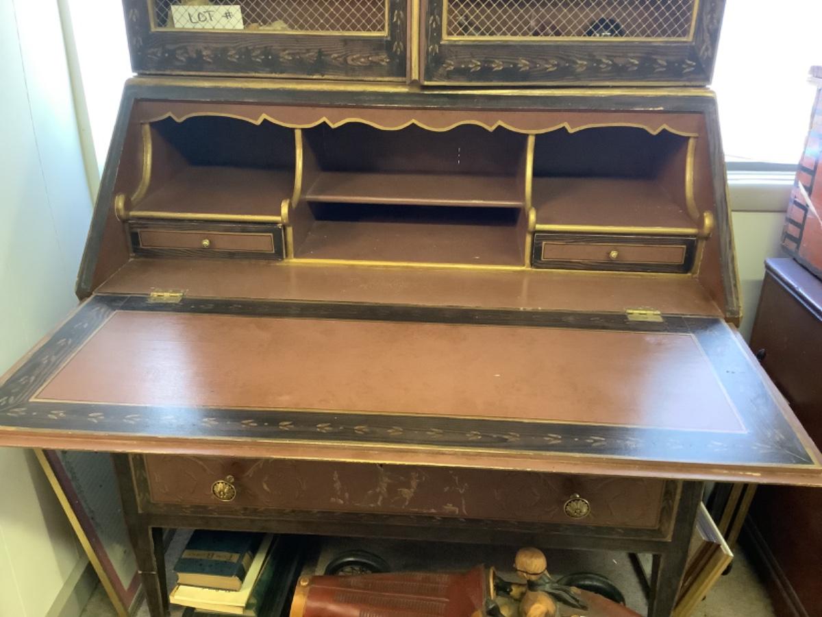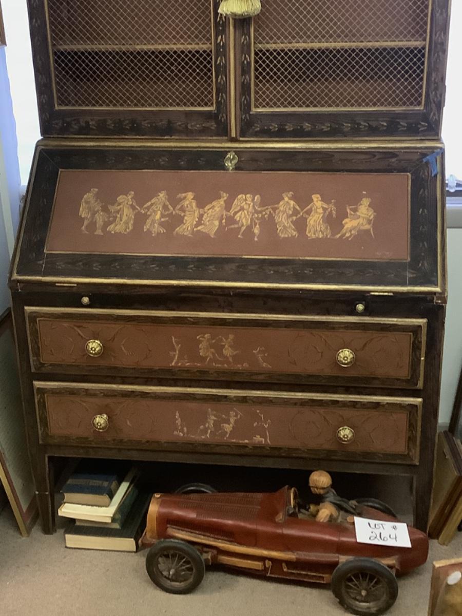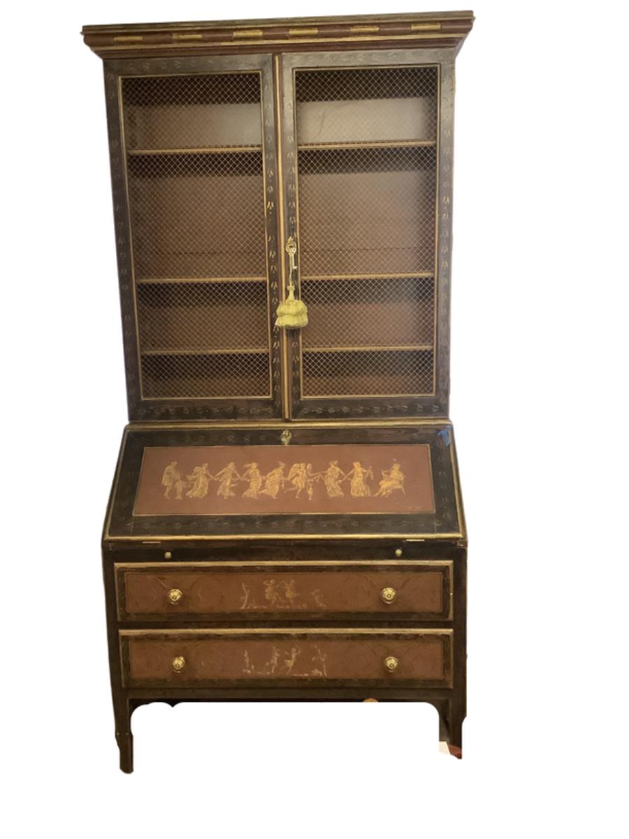 C933 Vintage Handpainted NeoClassical Bookcase Secretary Desk
