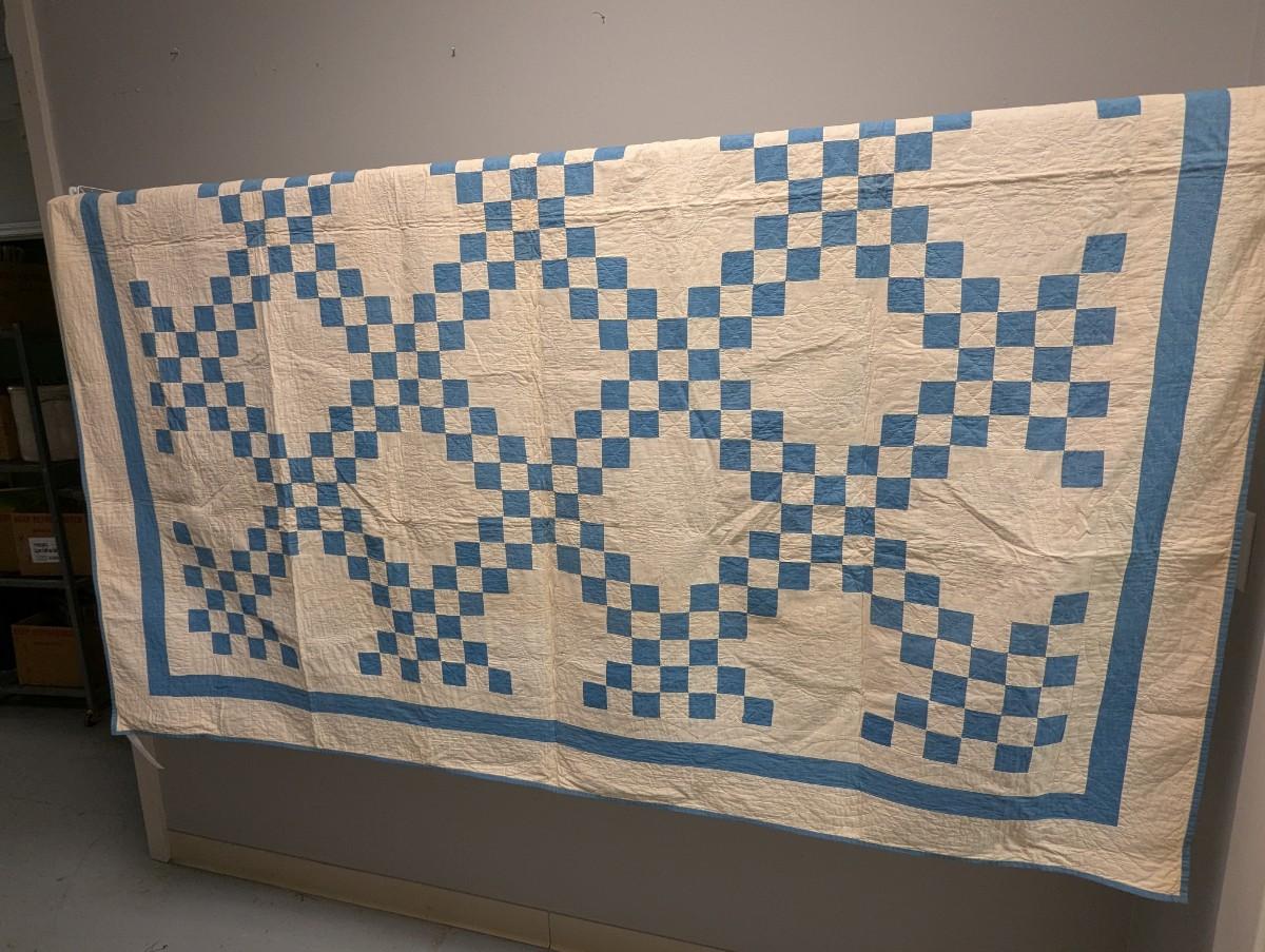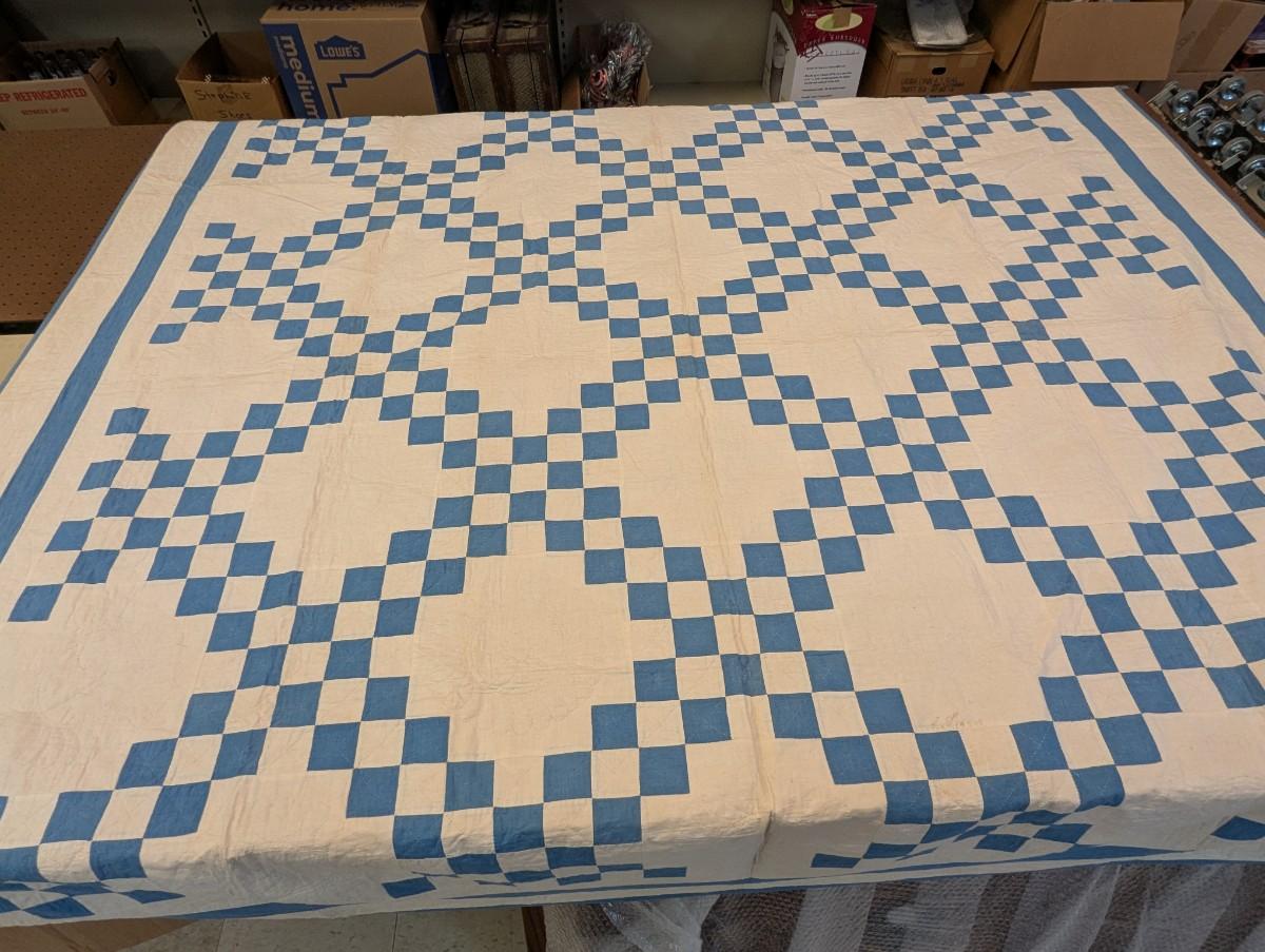 Ca. 1914-17 Blue & White Irish Chain Design Quilt With 2 Inch Blue Border 80 x 79 Inches #15
