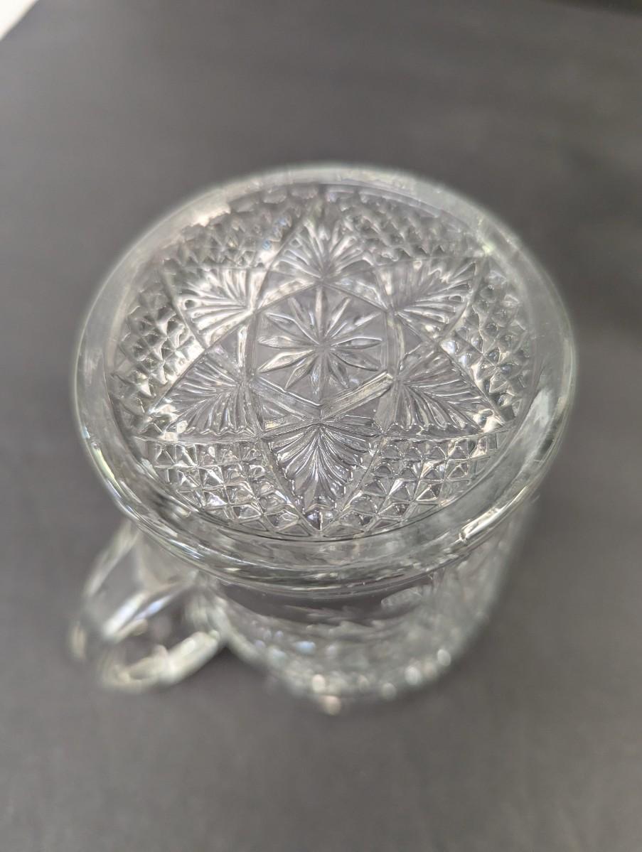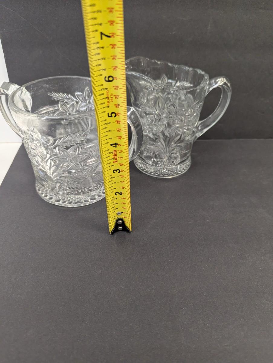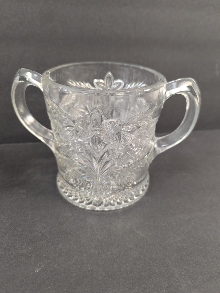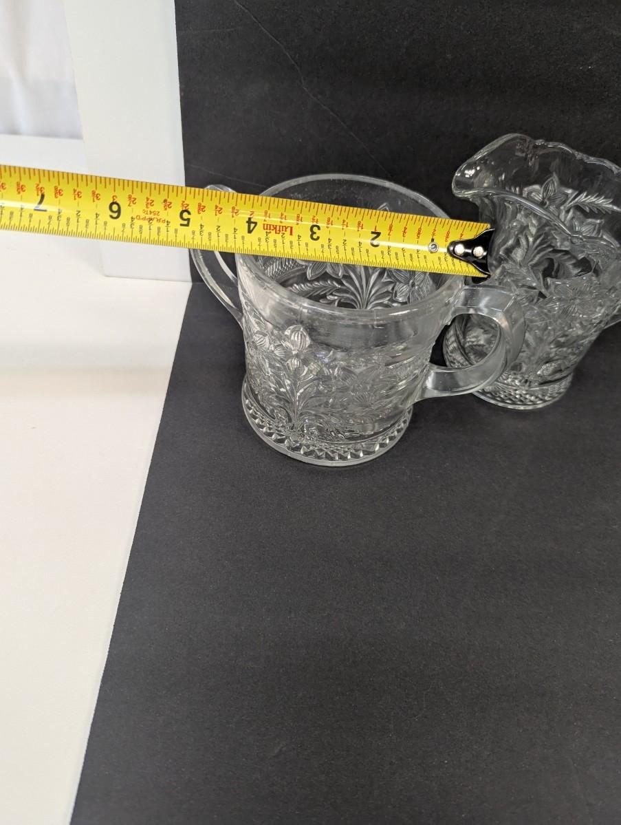 CA. 1918 EAPG Indiana Glass Bouquet Narcissus Spray Handled Spooner & Small Pitcher