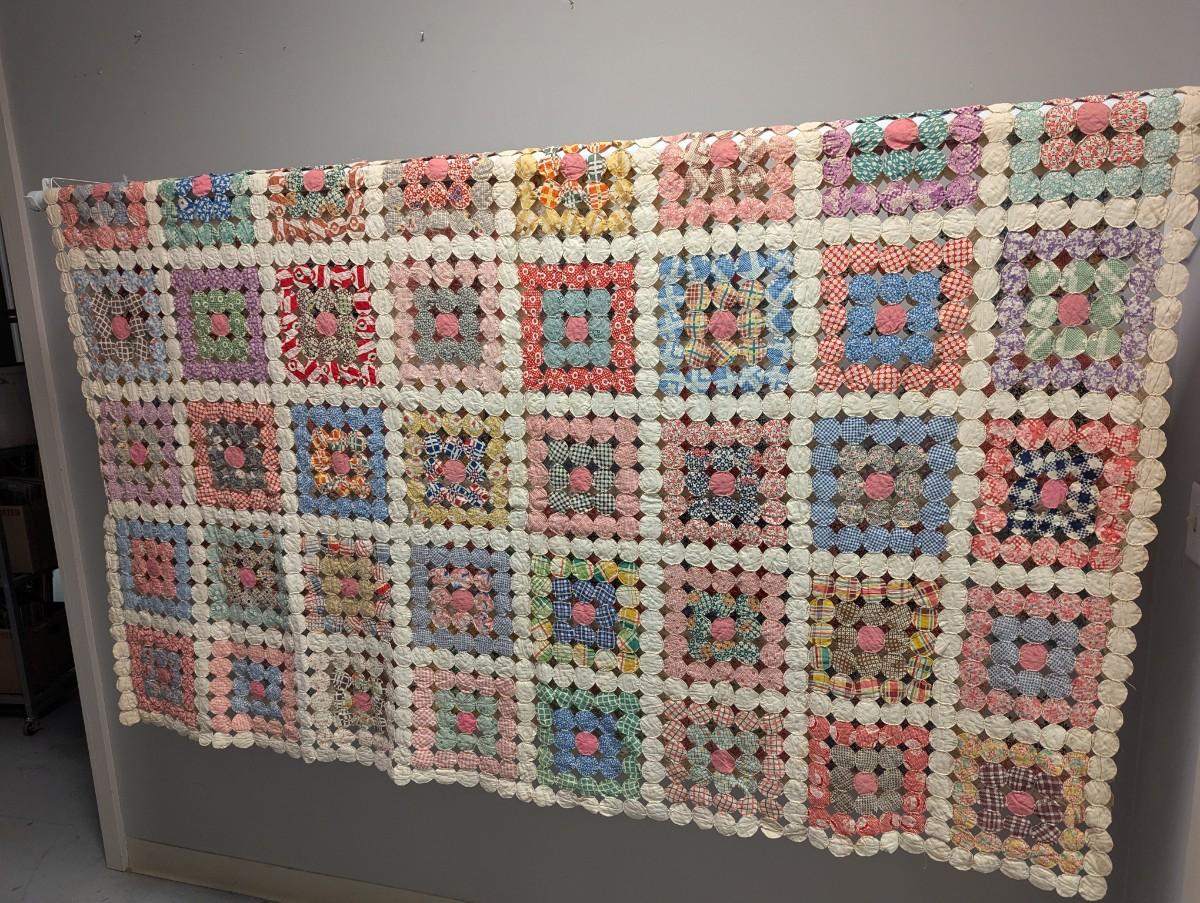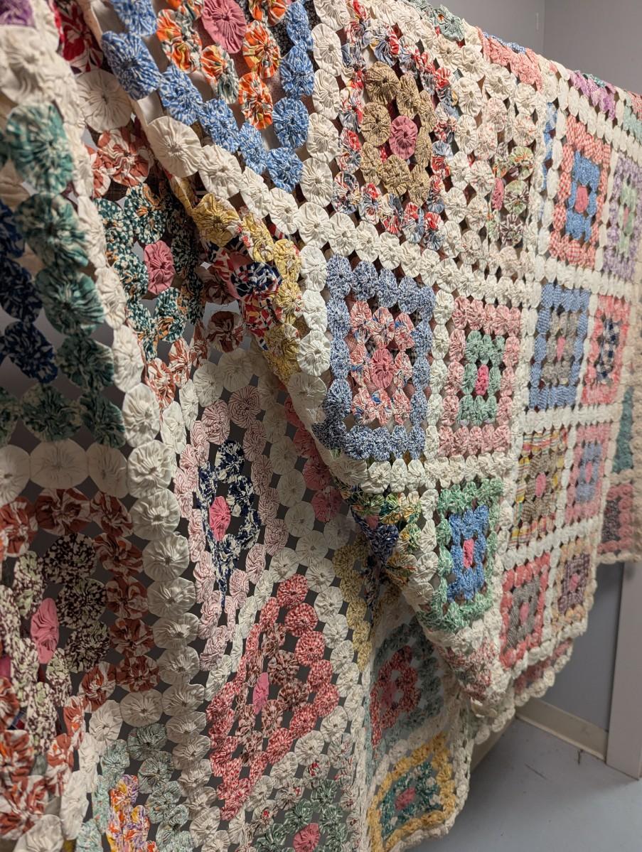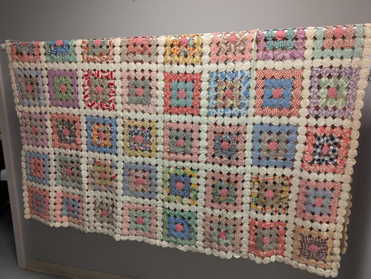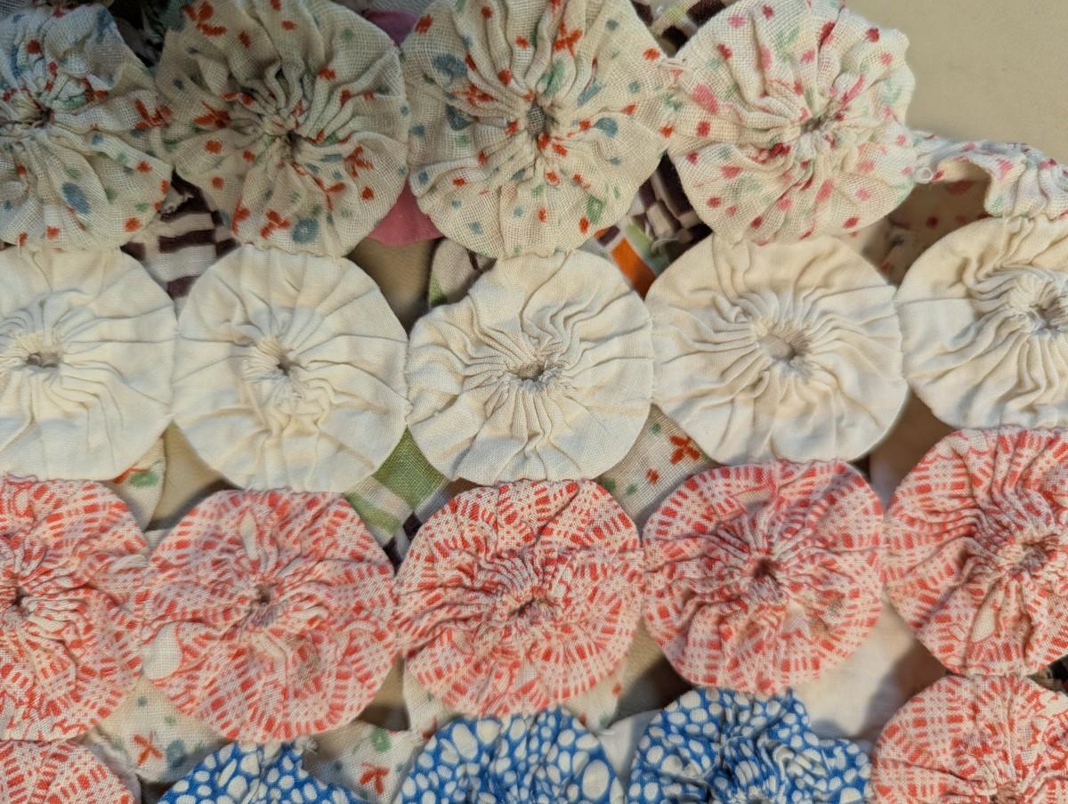 Ca. 1920 Indianapolis Decorative Yo-Yo- Design Puff Quilt In Variegated Colors 86 x 72 inches #20