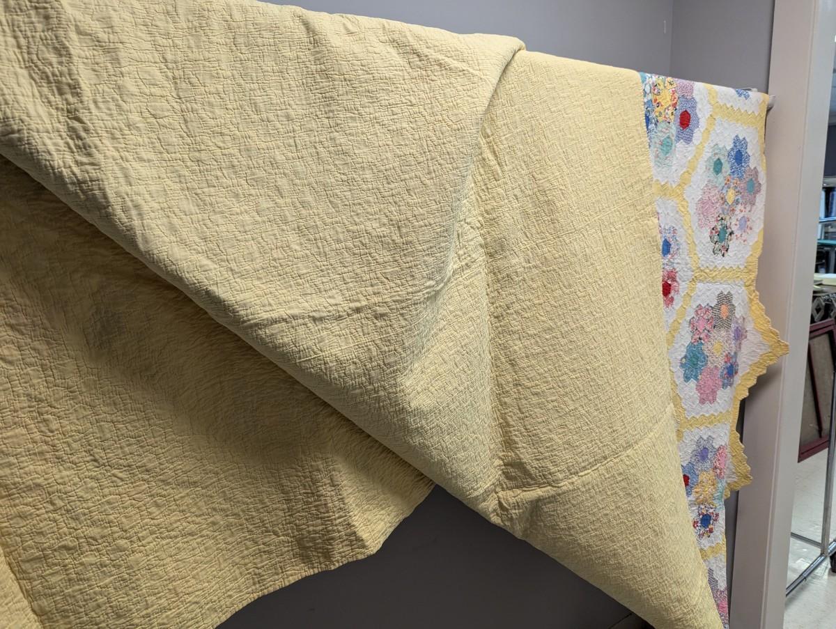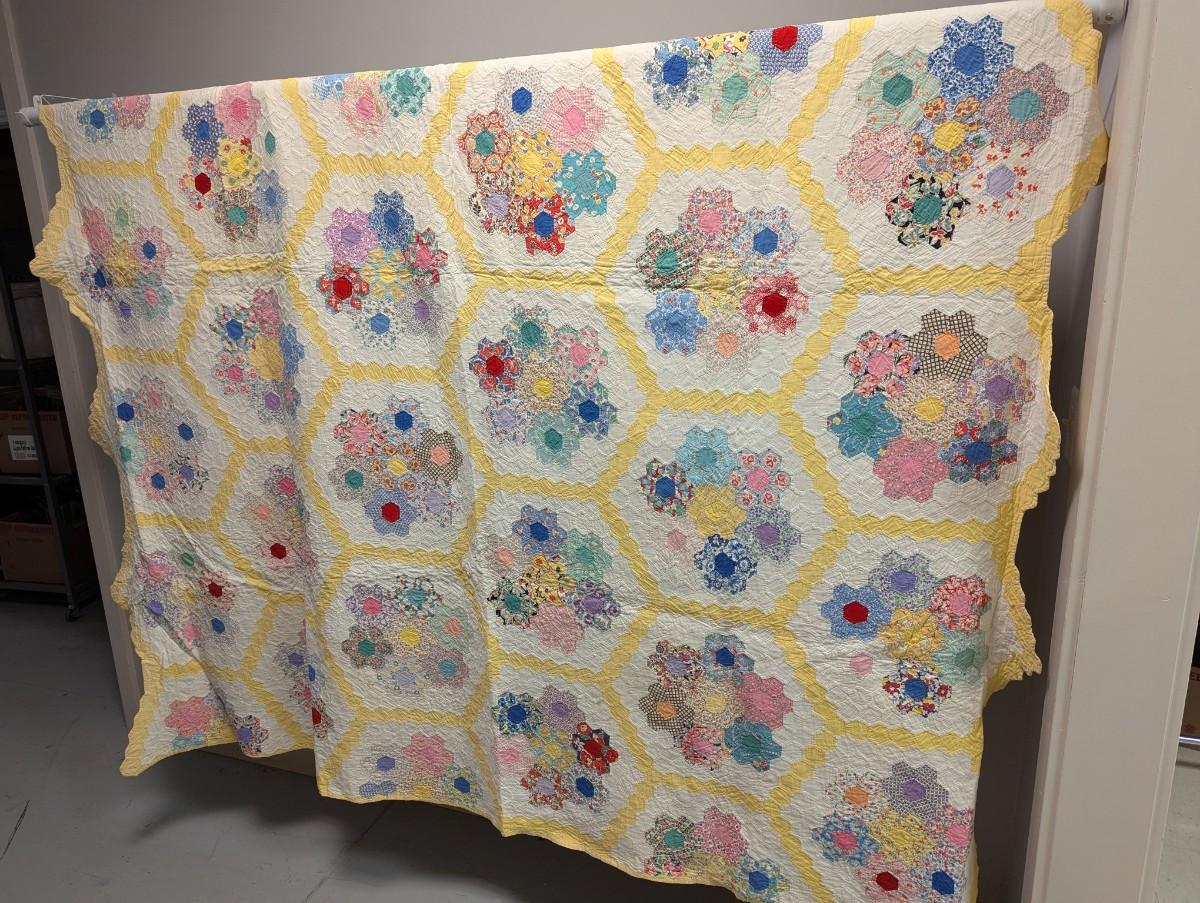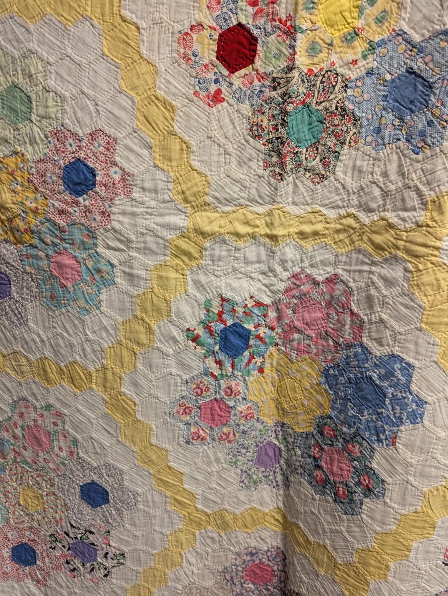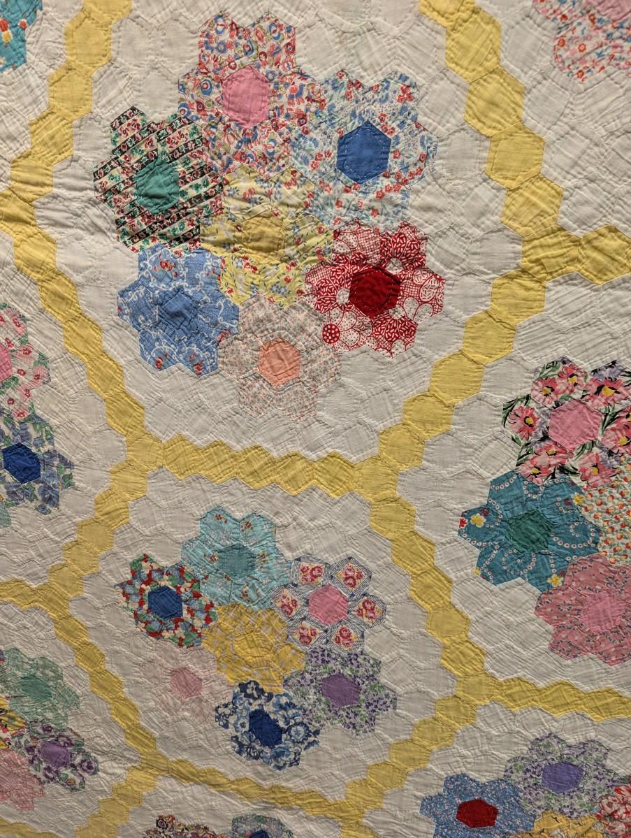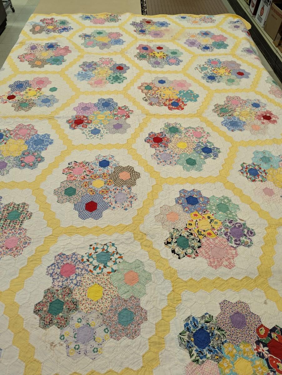 Ca. 1930 Grandmother's Flower Garden Quilt With Yellow Outline 92 x 82 Inches #32