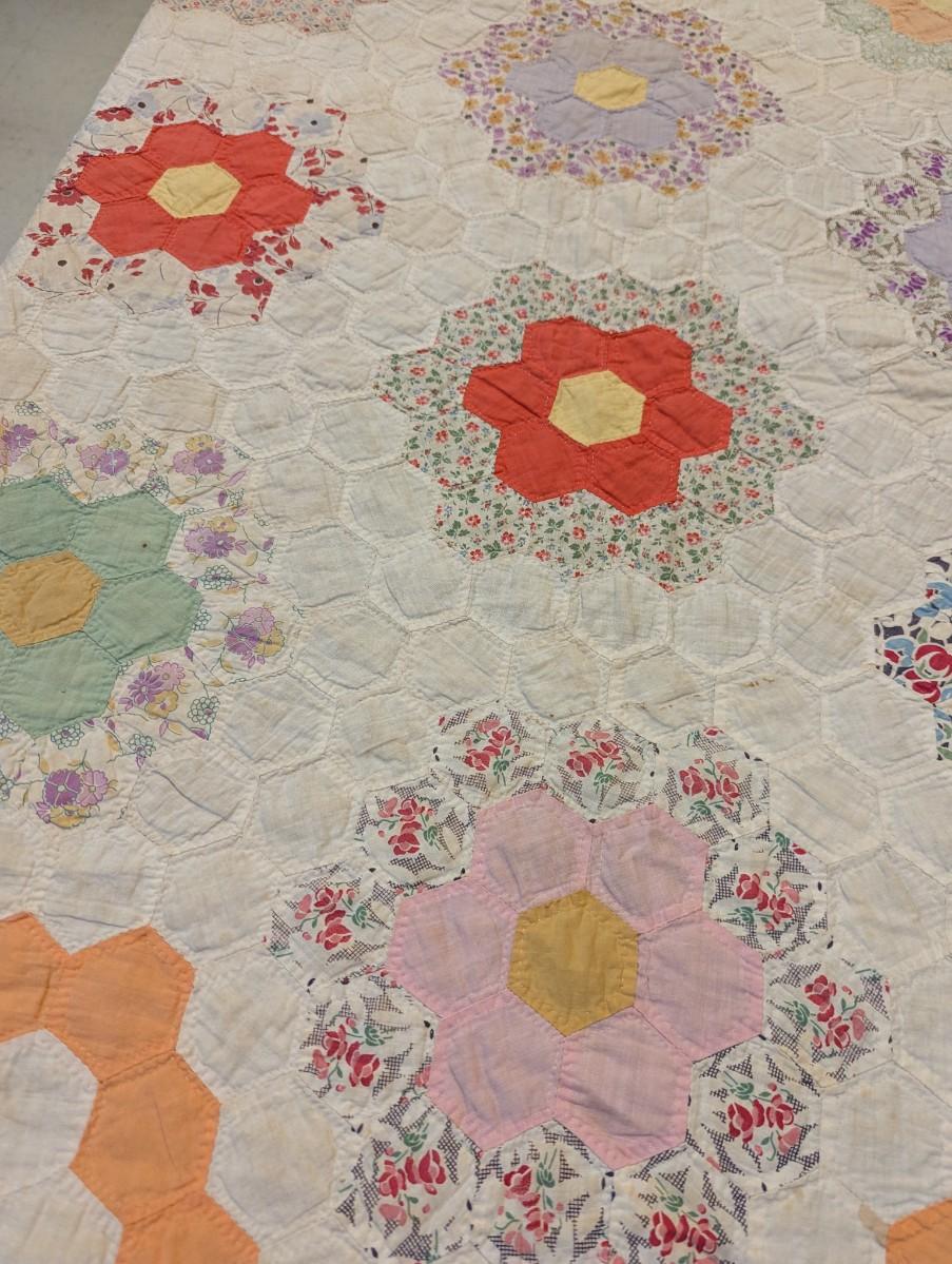 Ca. Early 1900's Grandmother's Flower Garden Patchwork Quilt 84 x 78 Inches #30
