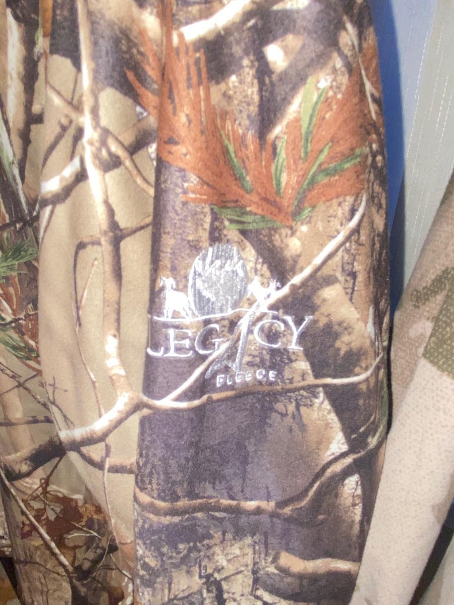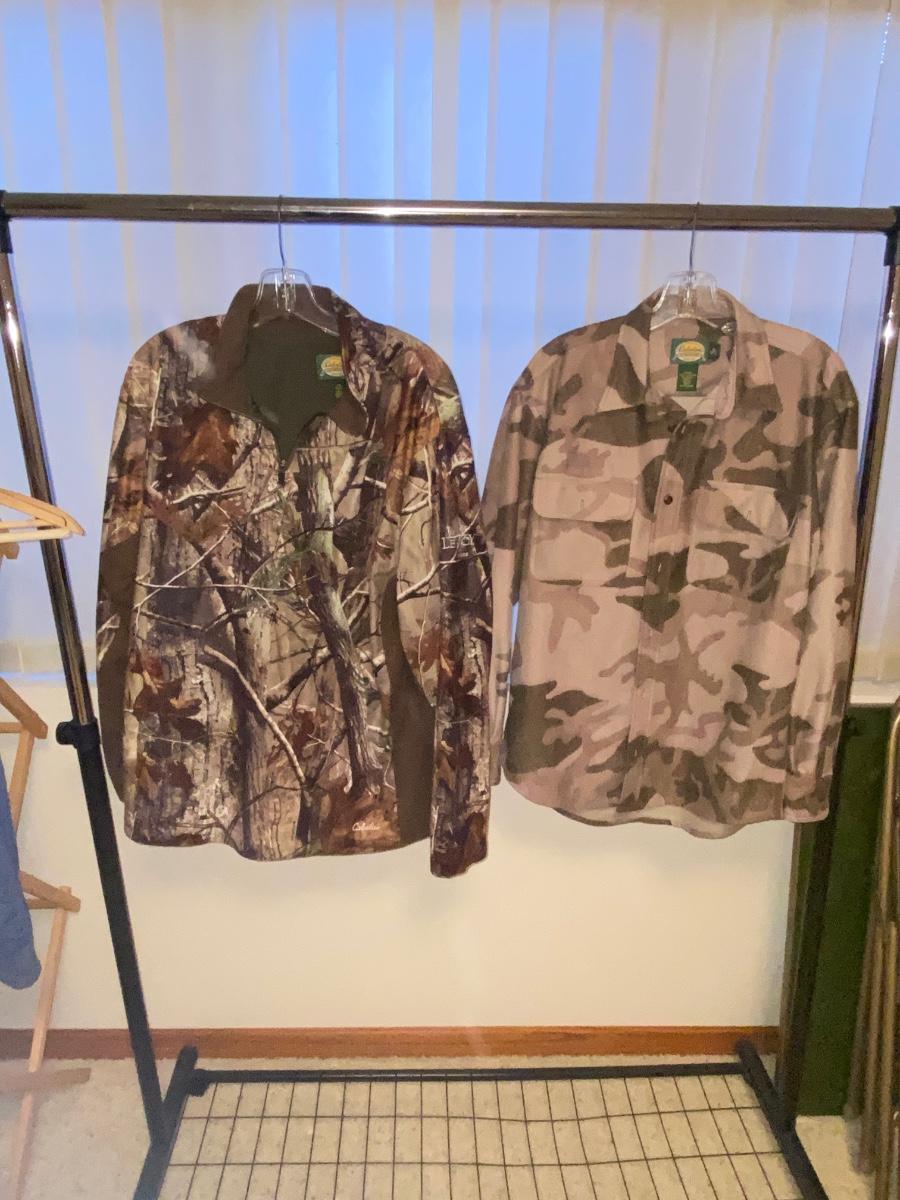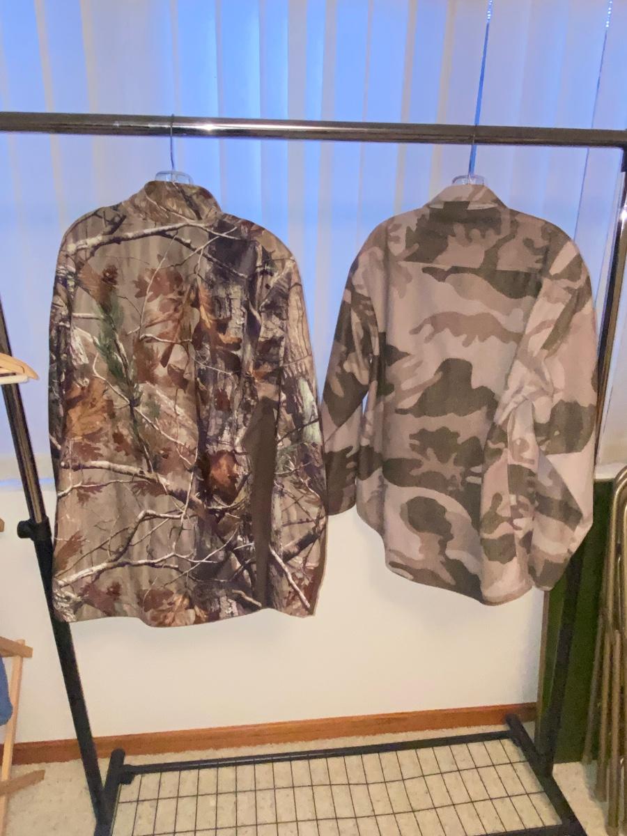 CABELA’S CAMO BUTTON DOWN FLANNEL SHIRT AND SOFT FLEECE PULLOVER .