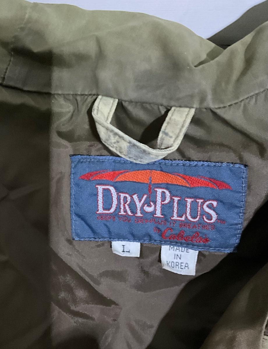 Cabela’s large jacket, rubber boots, size 13, gloves