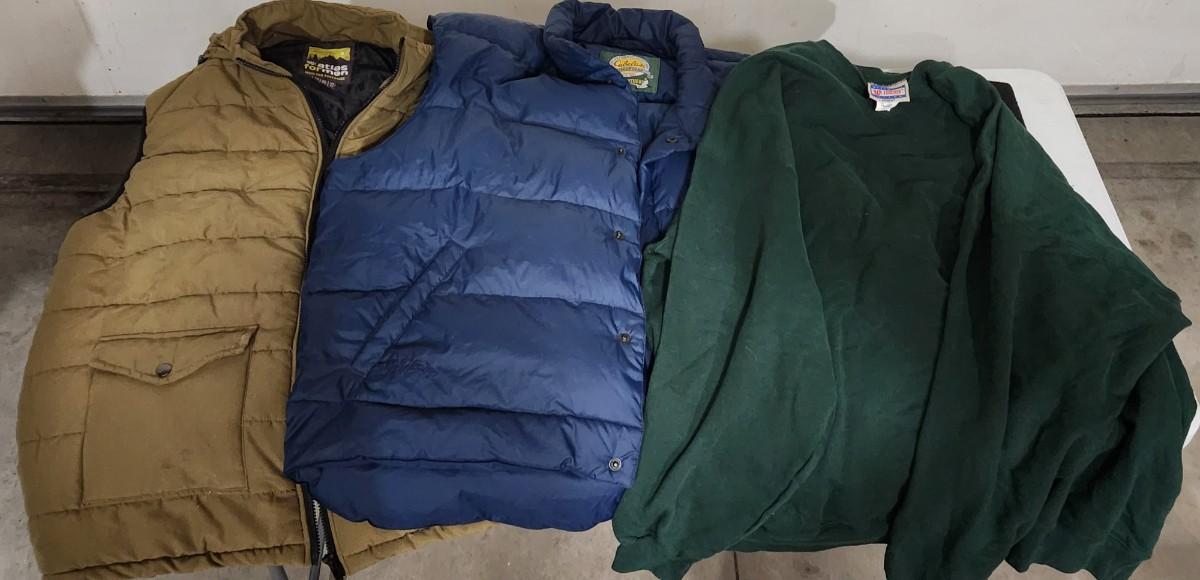 Cabelas Premier Northern Goose Down Puffer Zip Vest & plus other clothes. See pics for size.