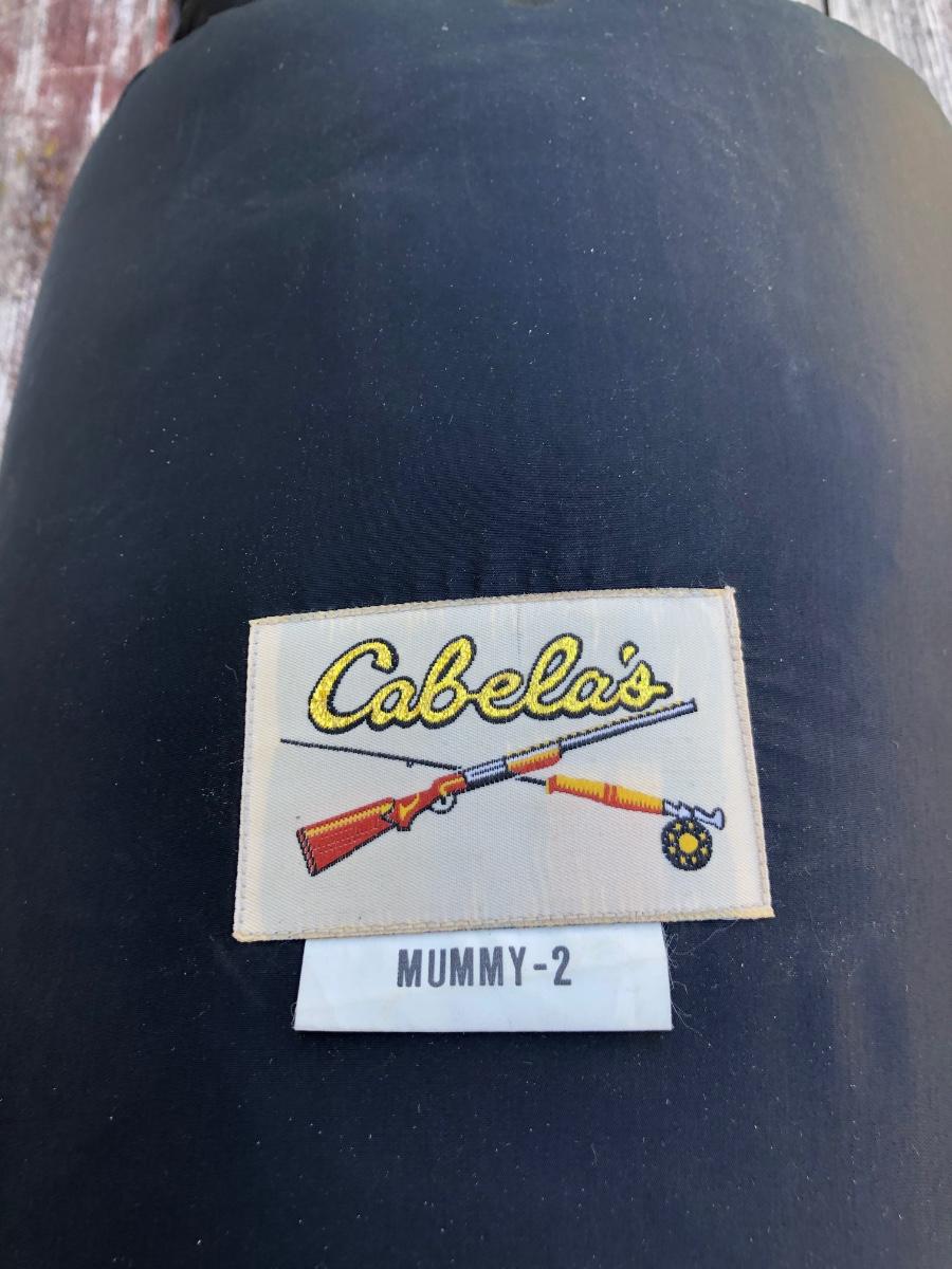 This Cabela’s Mummy 2 sleeping bag has been used once.