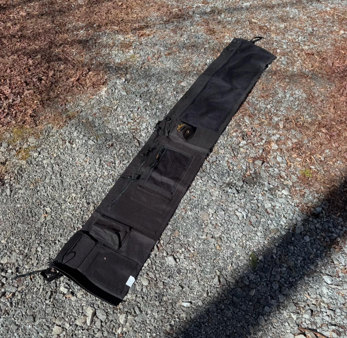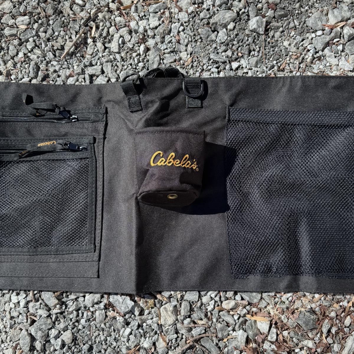 Lot includes one waterproof storage bag from Cabela’s. The bag has one mesh pocket, along with a few other pockets and cup holders. The storage bag measures 76.5” x 13.25” H. Shipping available.