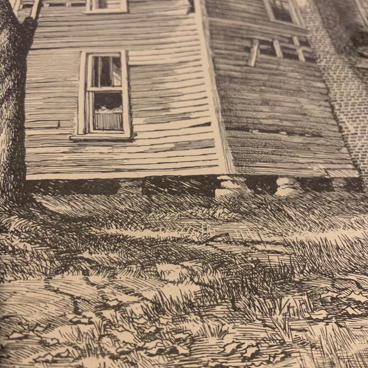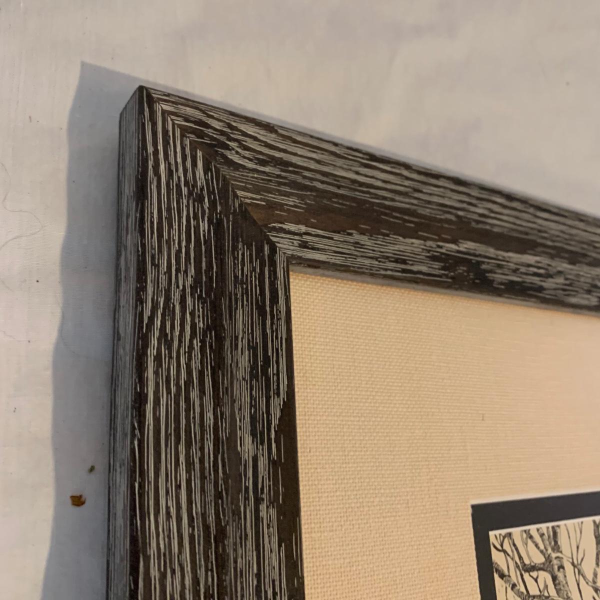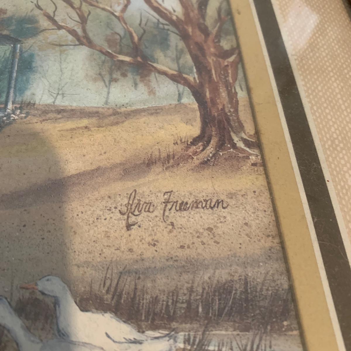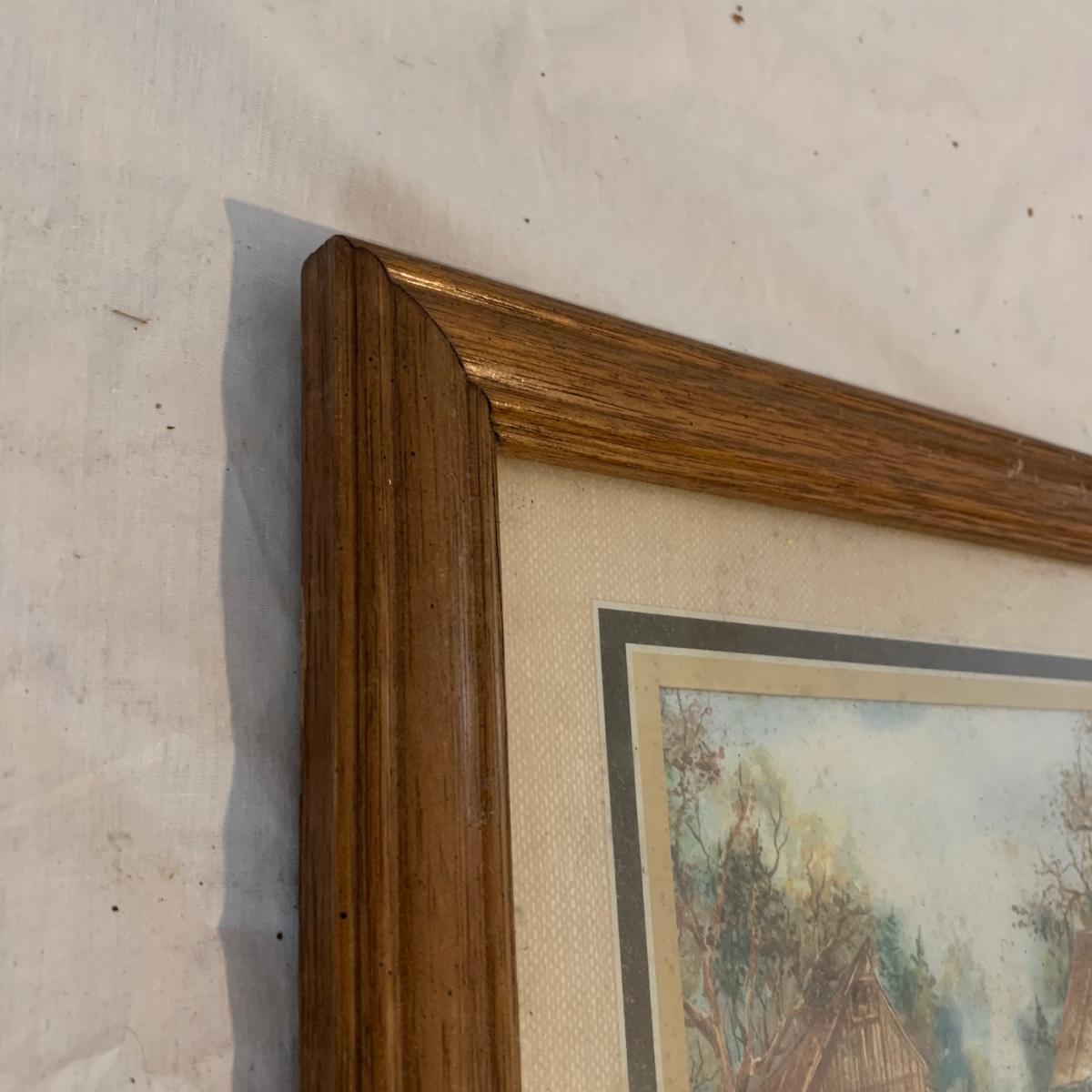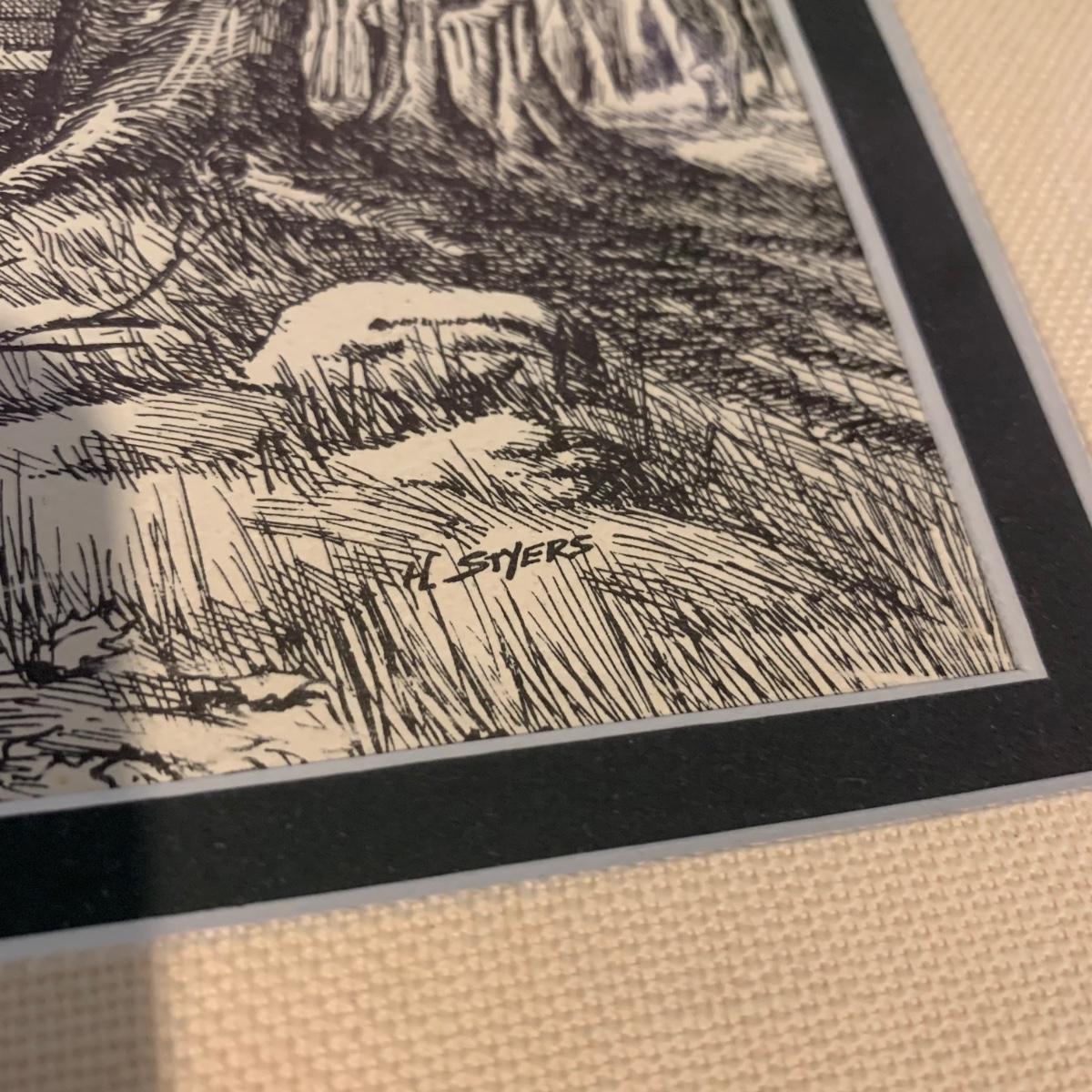 This lot includes three framed and matted art pieces. Included is one black and white print by H. Styers, one watercolor piece, and one warm colored print by Ana Freeman. The prints and frames are all in good condition. The watercolor will need to be readjusted in its frame. The largest frame measures about 23in x 19.5in. Shipping available. Shipping art can be costly. We suggest calling our local UPS with dimensions and getting an estimate before bidding. (828) 252-6930.