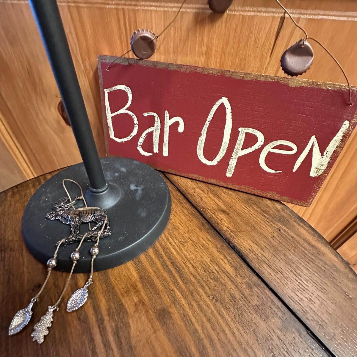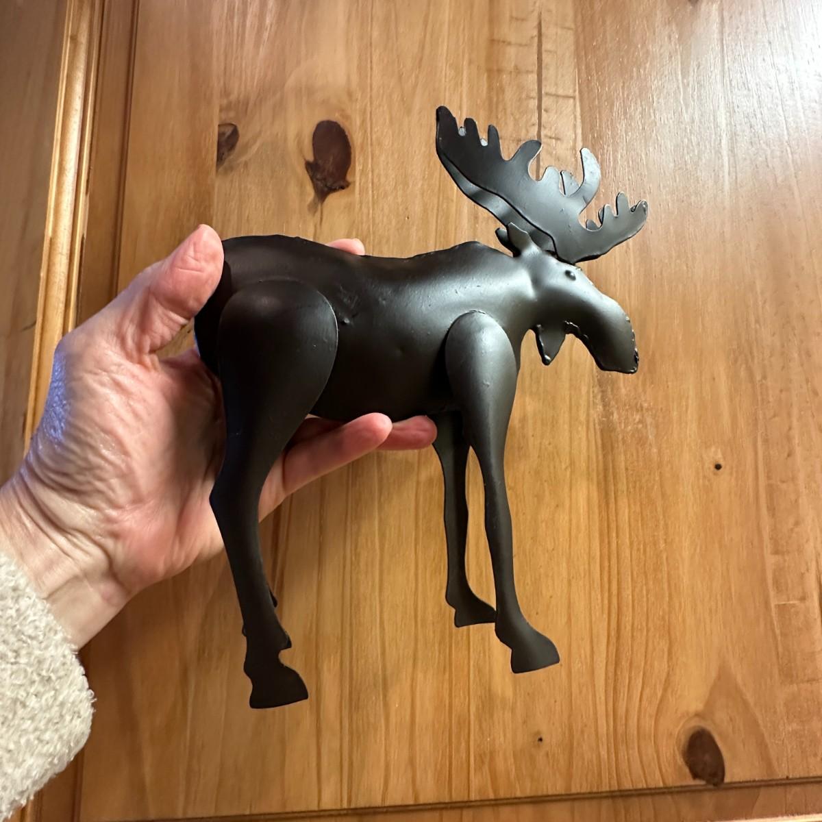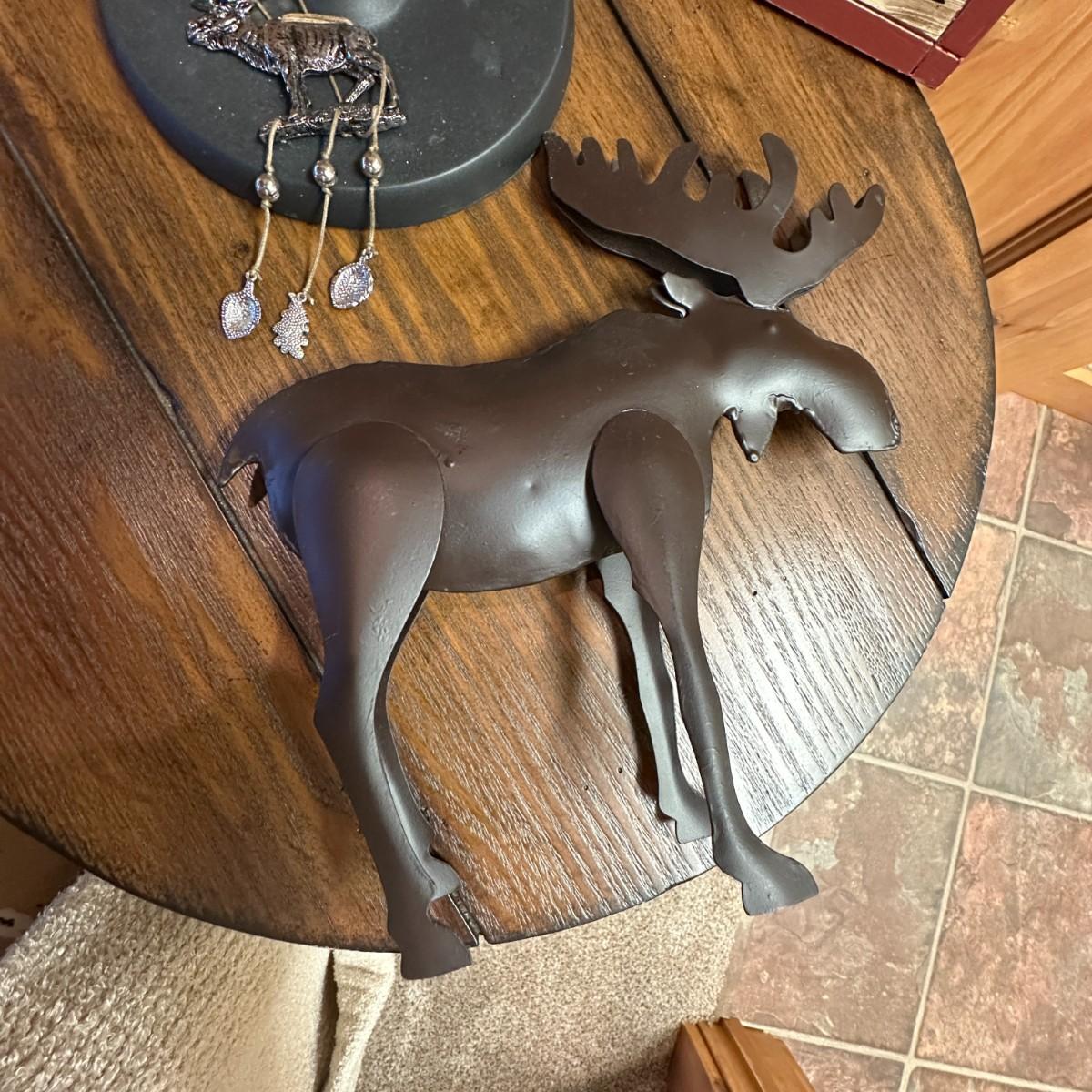 Cabin Decor Lot- metal moose, beer/bar flipover sign, metal paper towel holder, and moose ornament