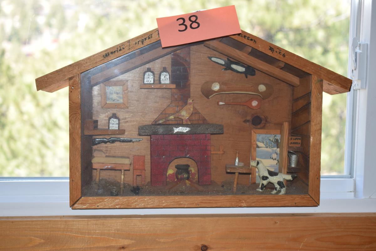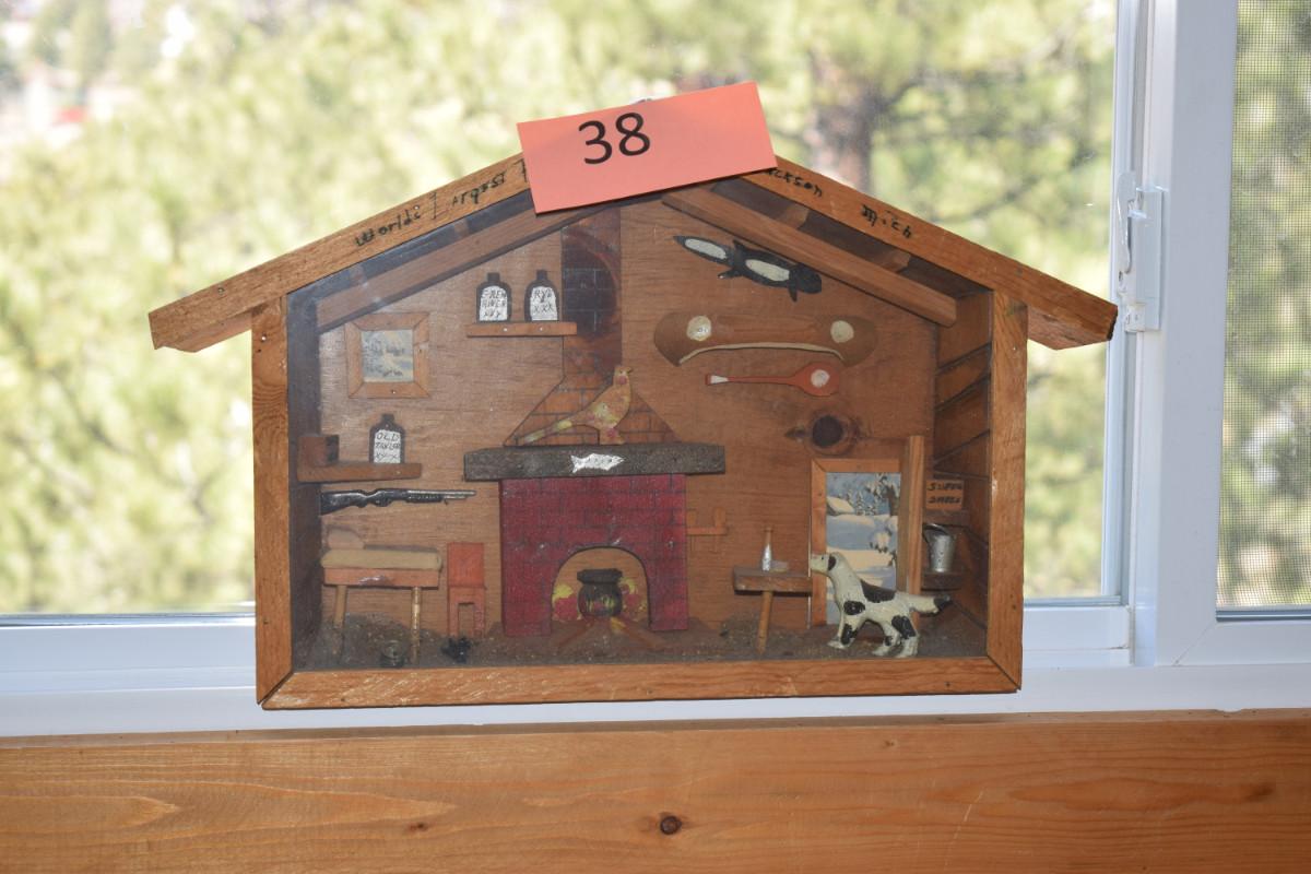 Cute cabin shadowbox, older vintage!