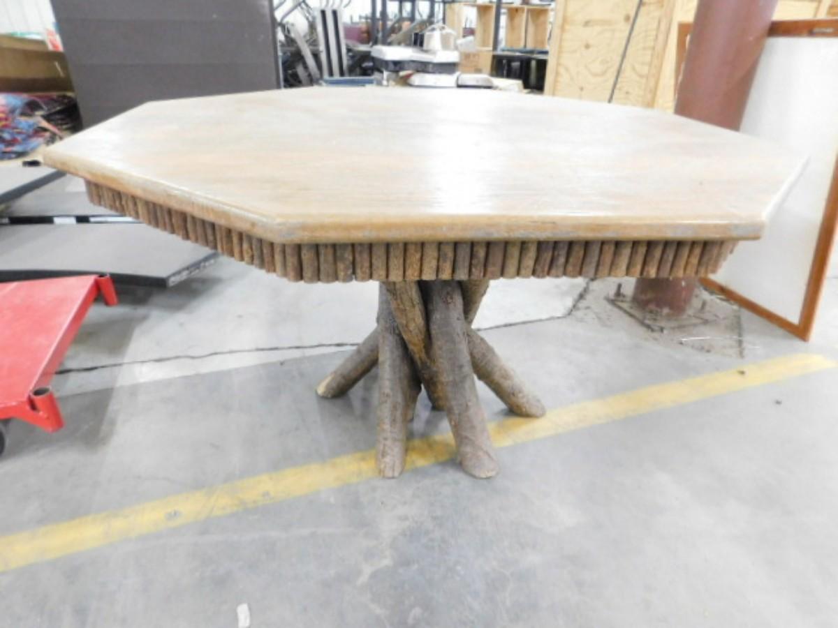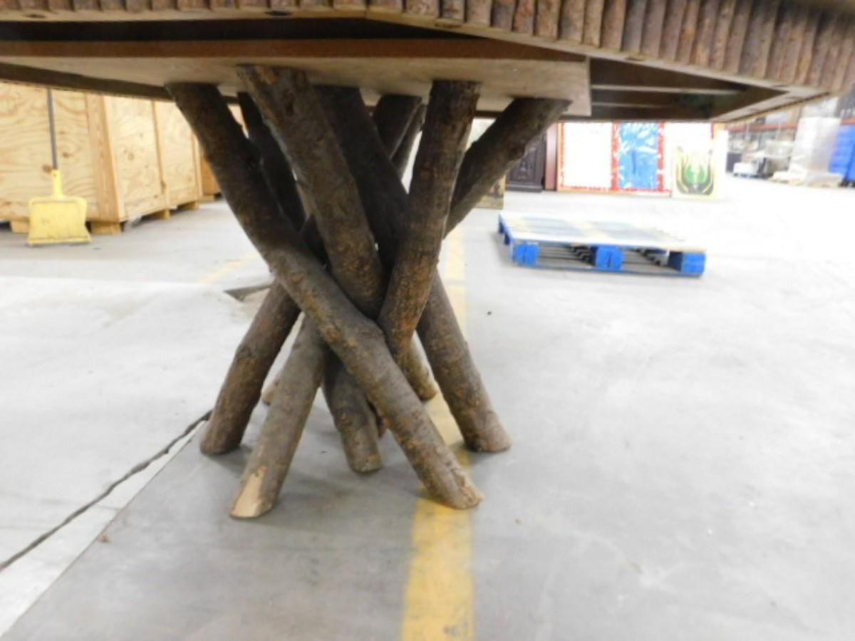 Cabin Style Wood Table with Tree Branch Pedestal