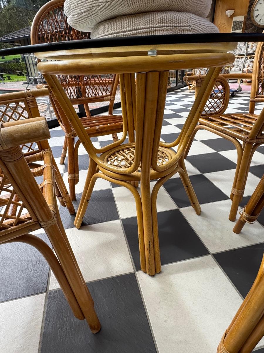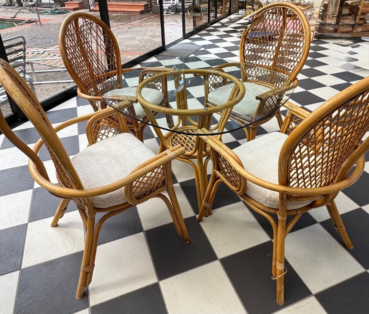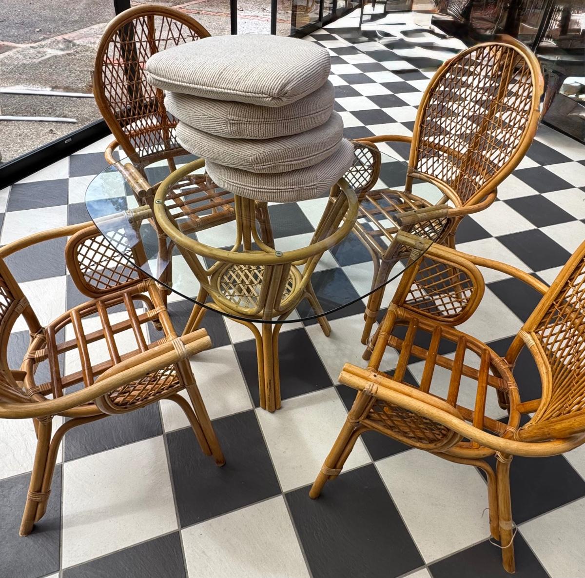 Vintage Bamboo Glass Dinette Table and 4 Chairs