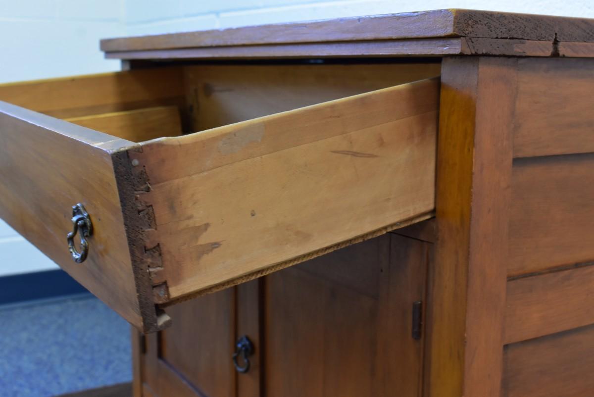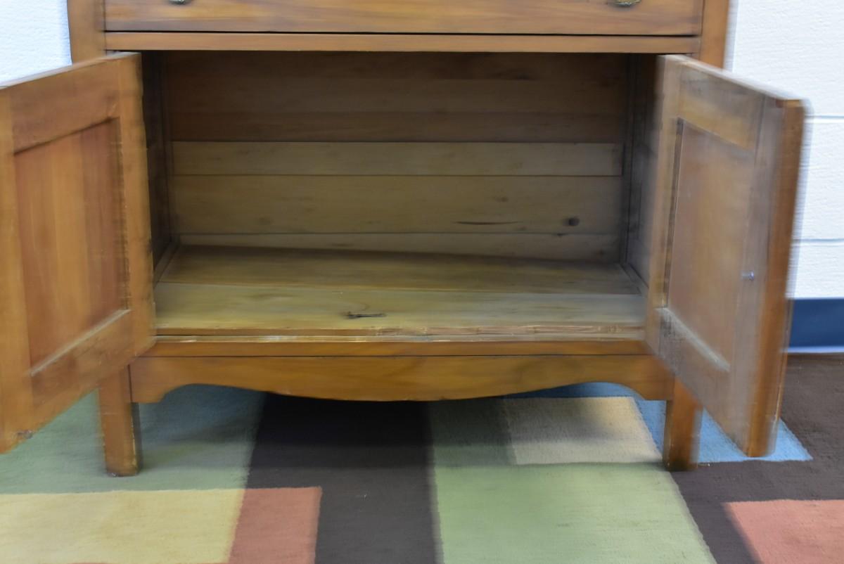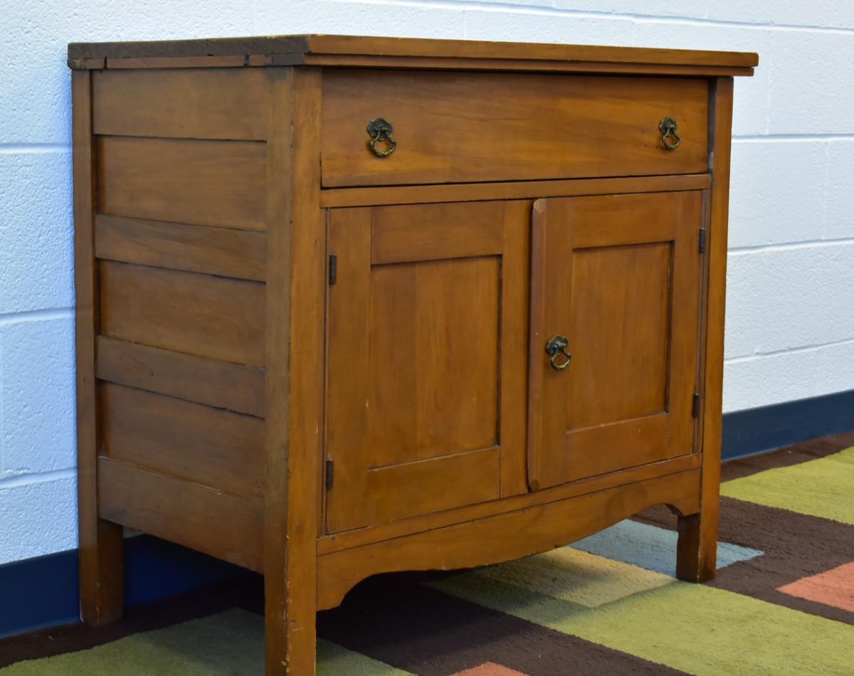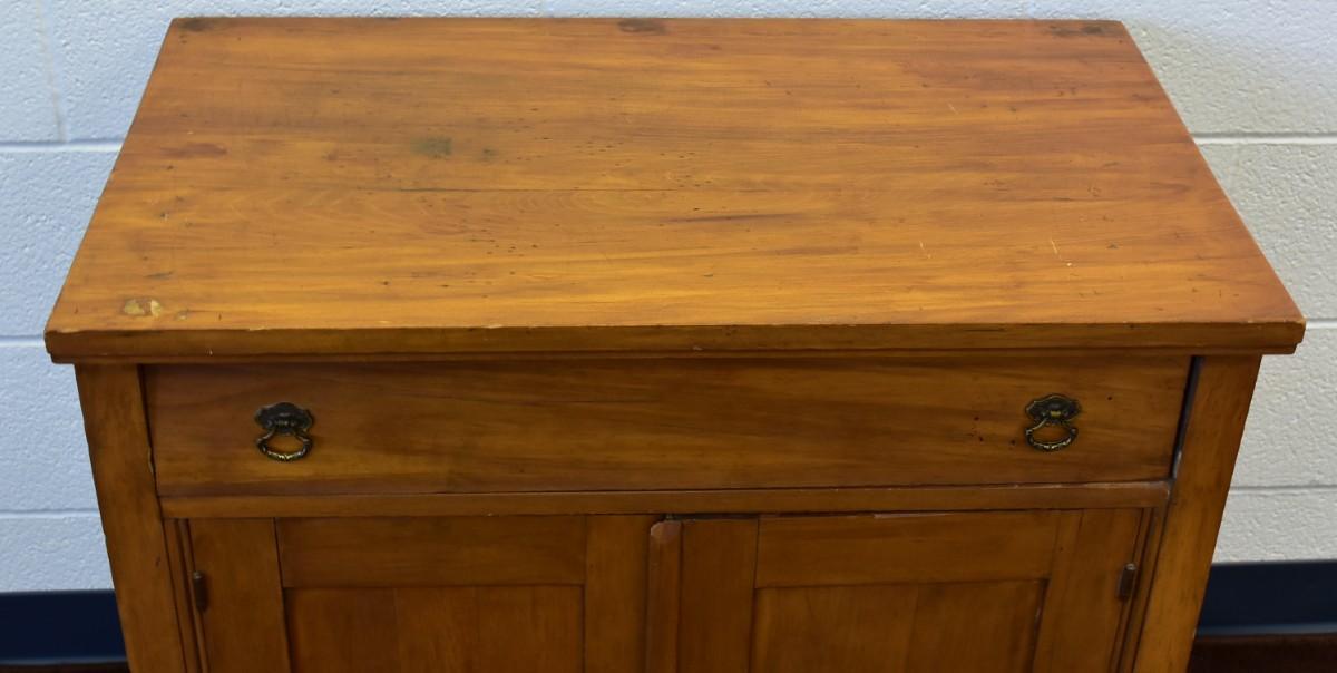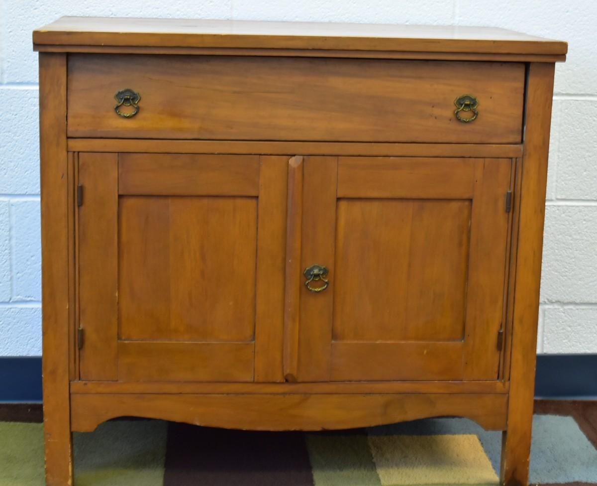 Cute wooden cabinet. Scuff marks on the top give character to this piece.