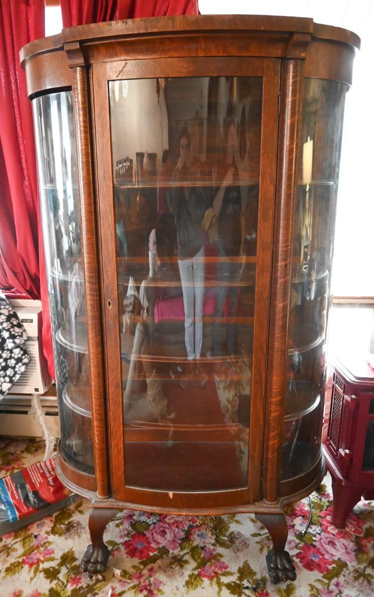 CURVED GLASS CLAWFOOT CURIO CABINET