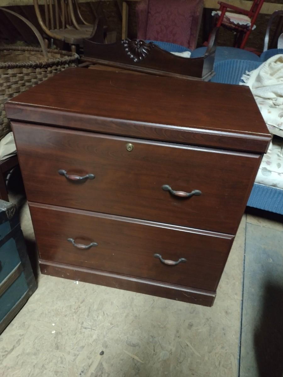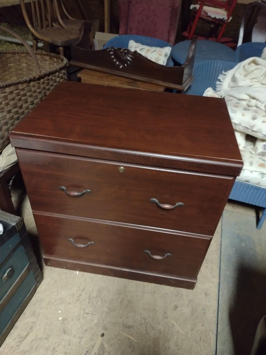 Double Slide Drawer Office Cabinet Mahogany Finish Choice A upstairs item. Please bring assistance to remove from the home.