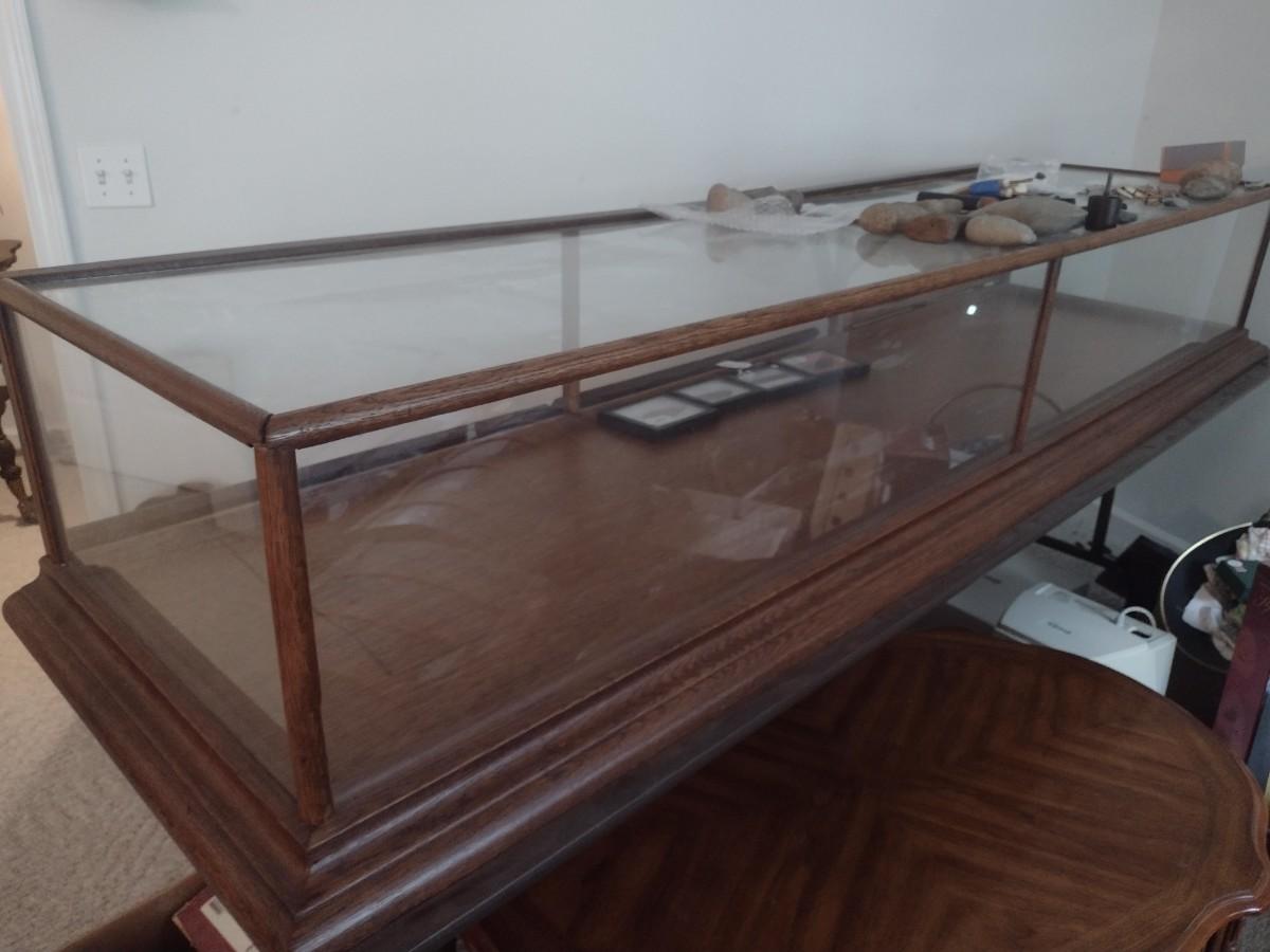Vintage Oak Frame Glass Tabletop Display Cabinet