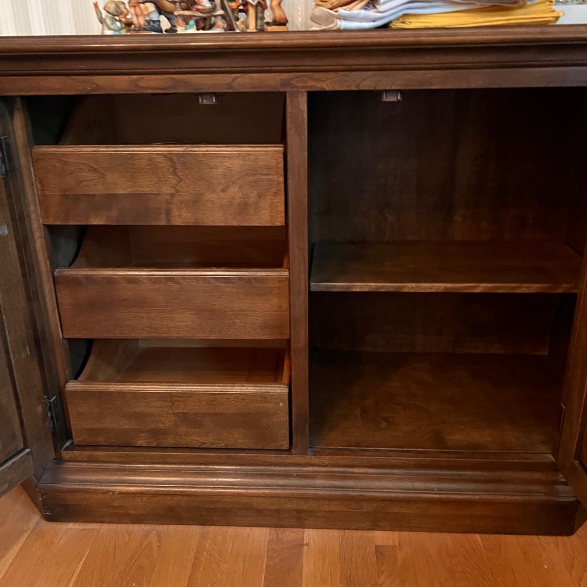 Excellent condition! High quality buffet table cabinet with 2 doors and 3 drawers on inside.