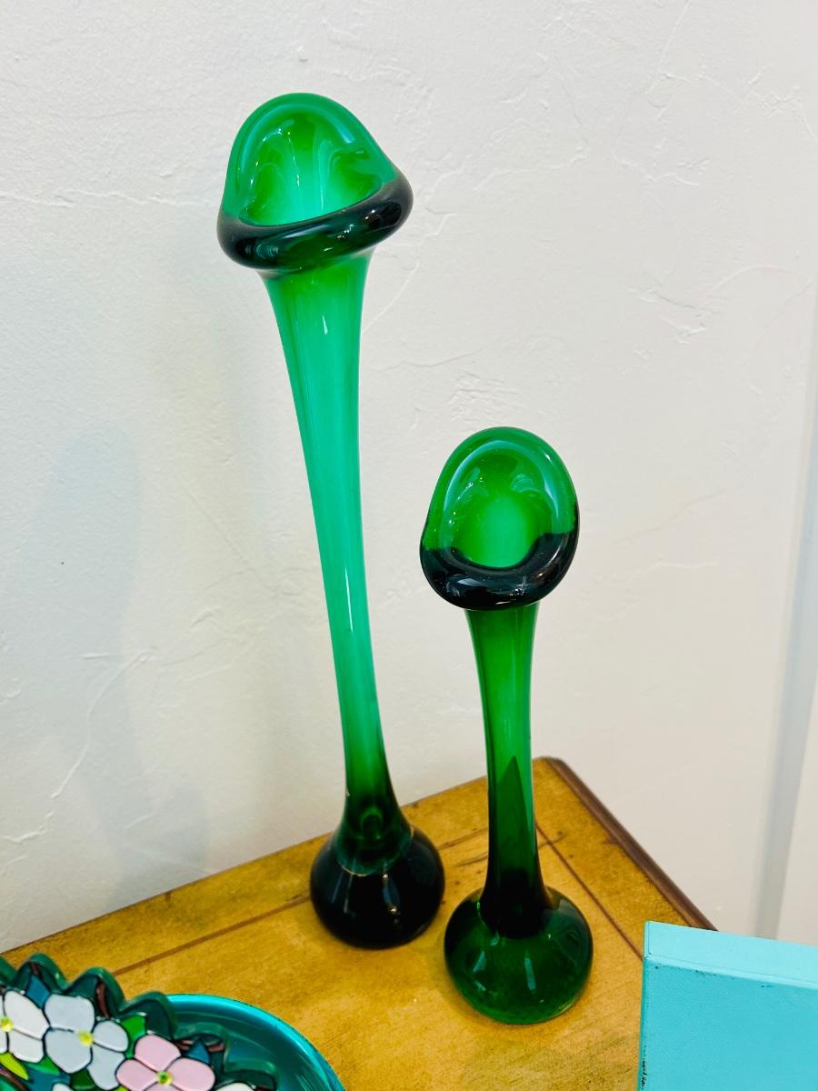 Repair to one green vase
