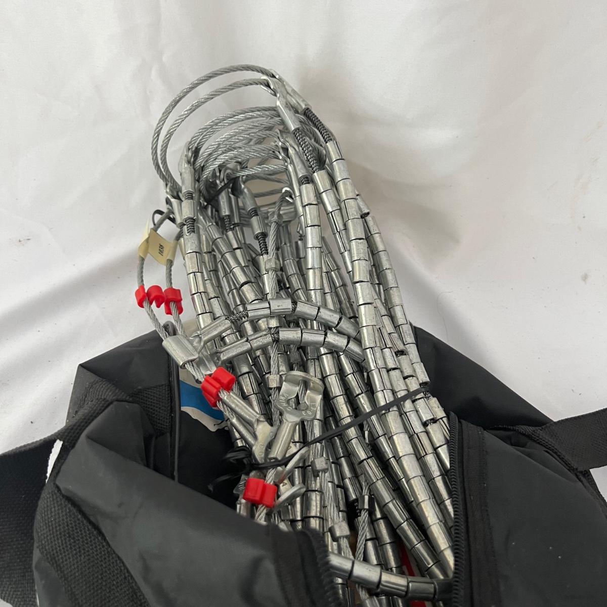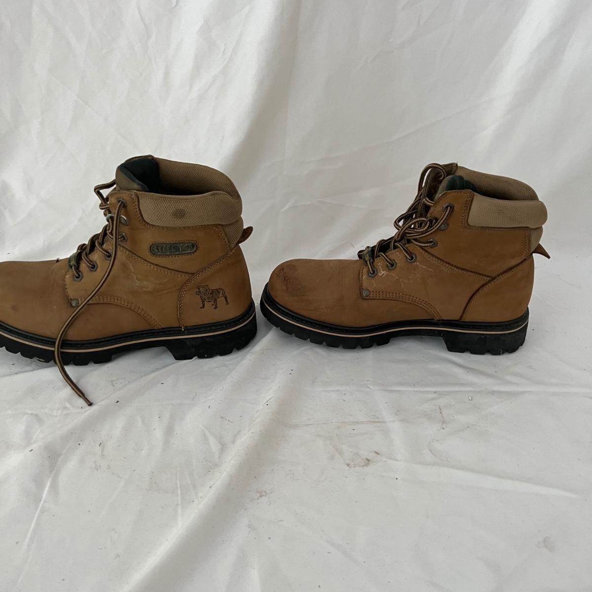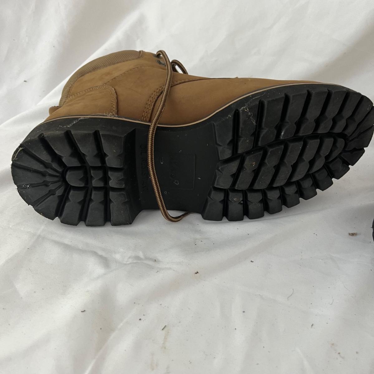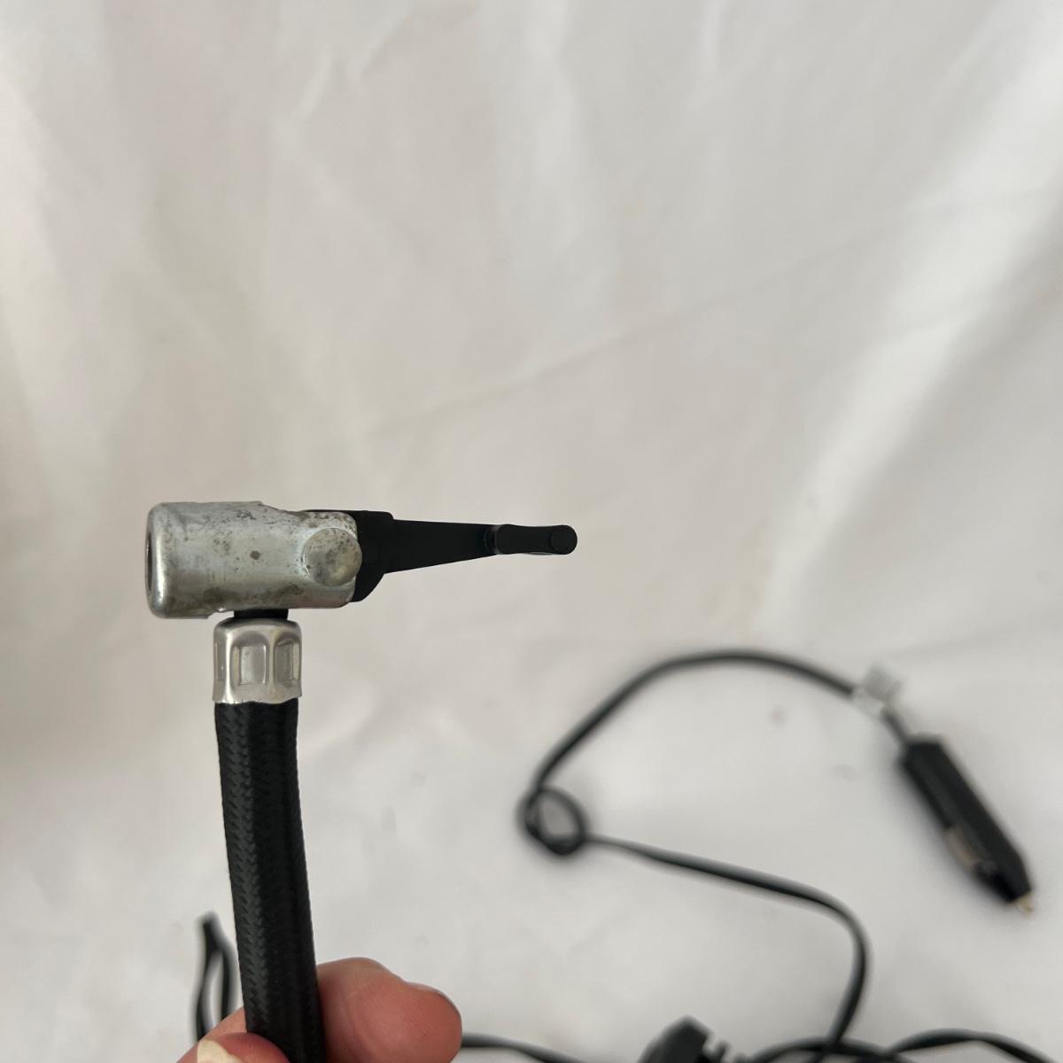 A 250 psi 12 V cigarette lighter powered compressor. Slim clamp 16 foot jumper cables. Cable chains that fit SAE class “S” car radial and bias ply tires. Mak steel toe size 10.5 men’s boots.