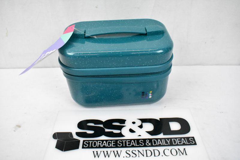 Caboodles Voyager Train Case, Teal Sparkle. Small scuffs