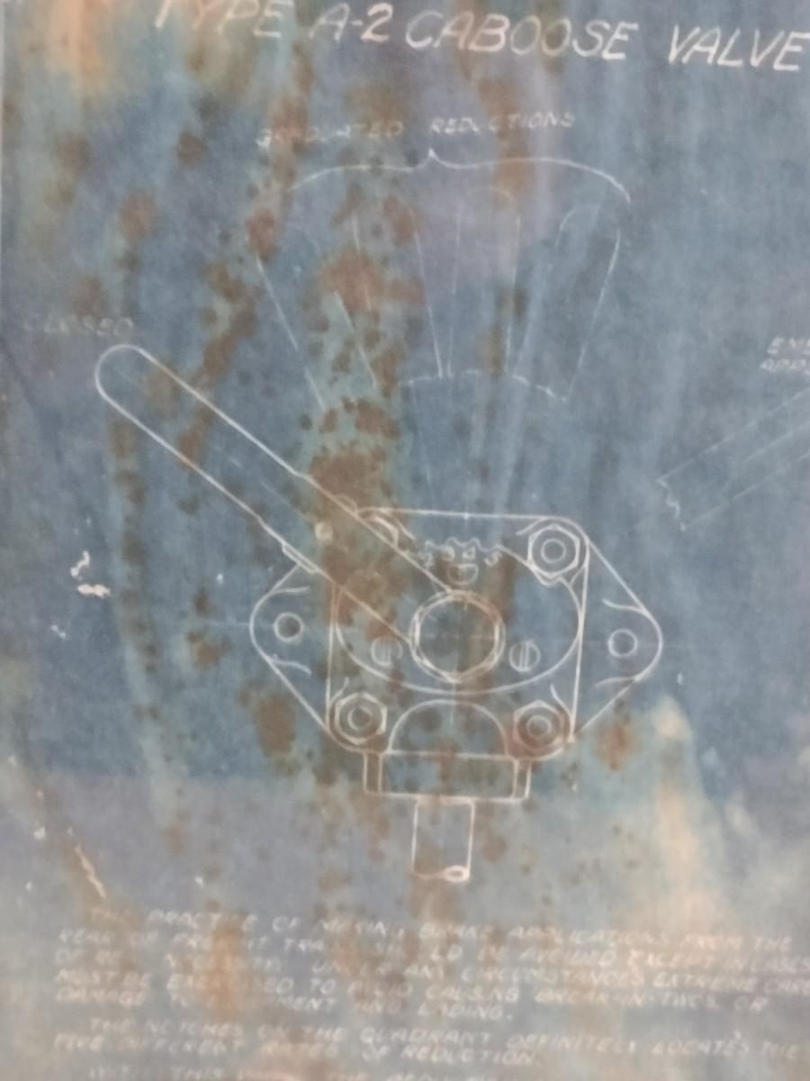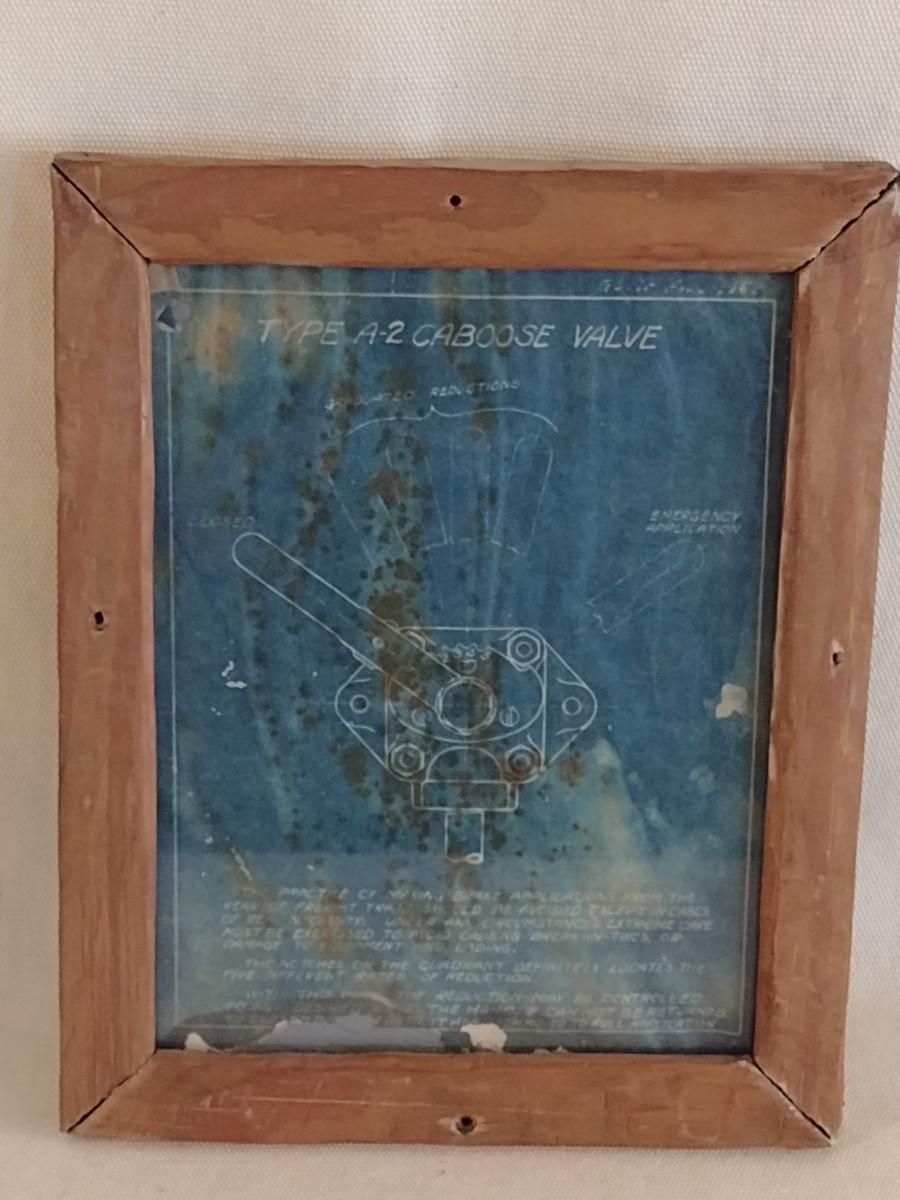 Framed A-2 Caboose Valve Diagram from Laurinburg and Southern Wood Caboose paper on metal backing
