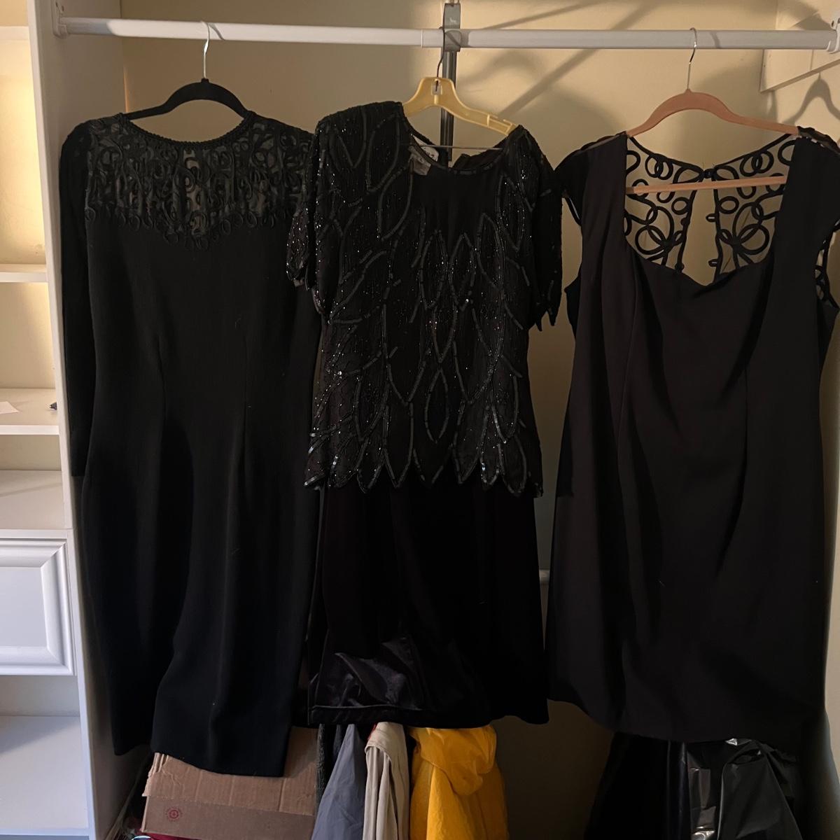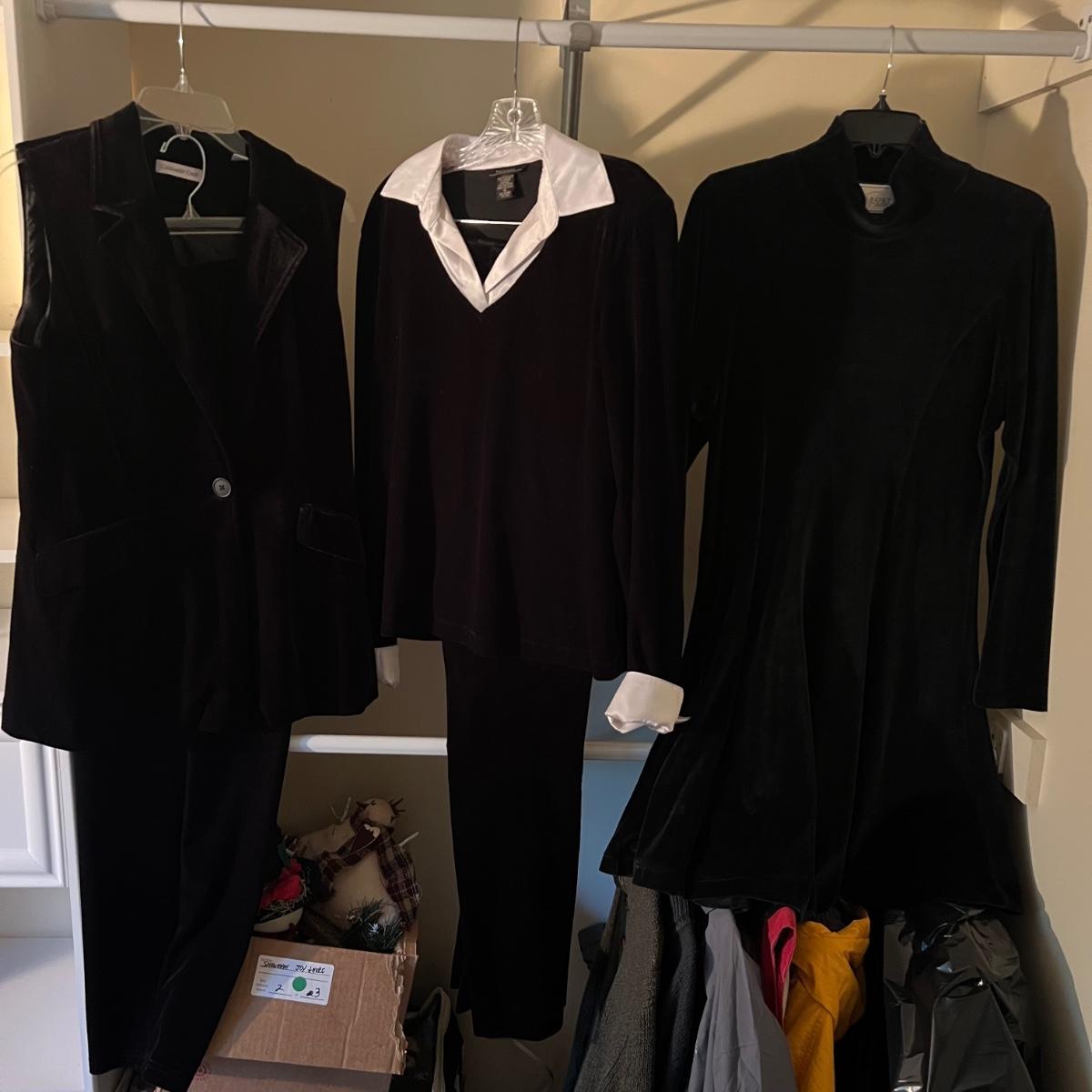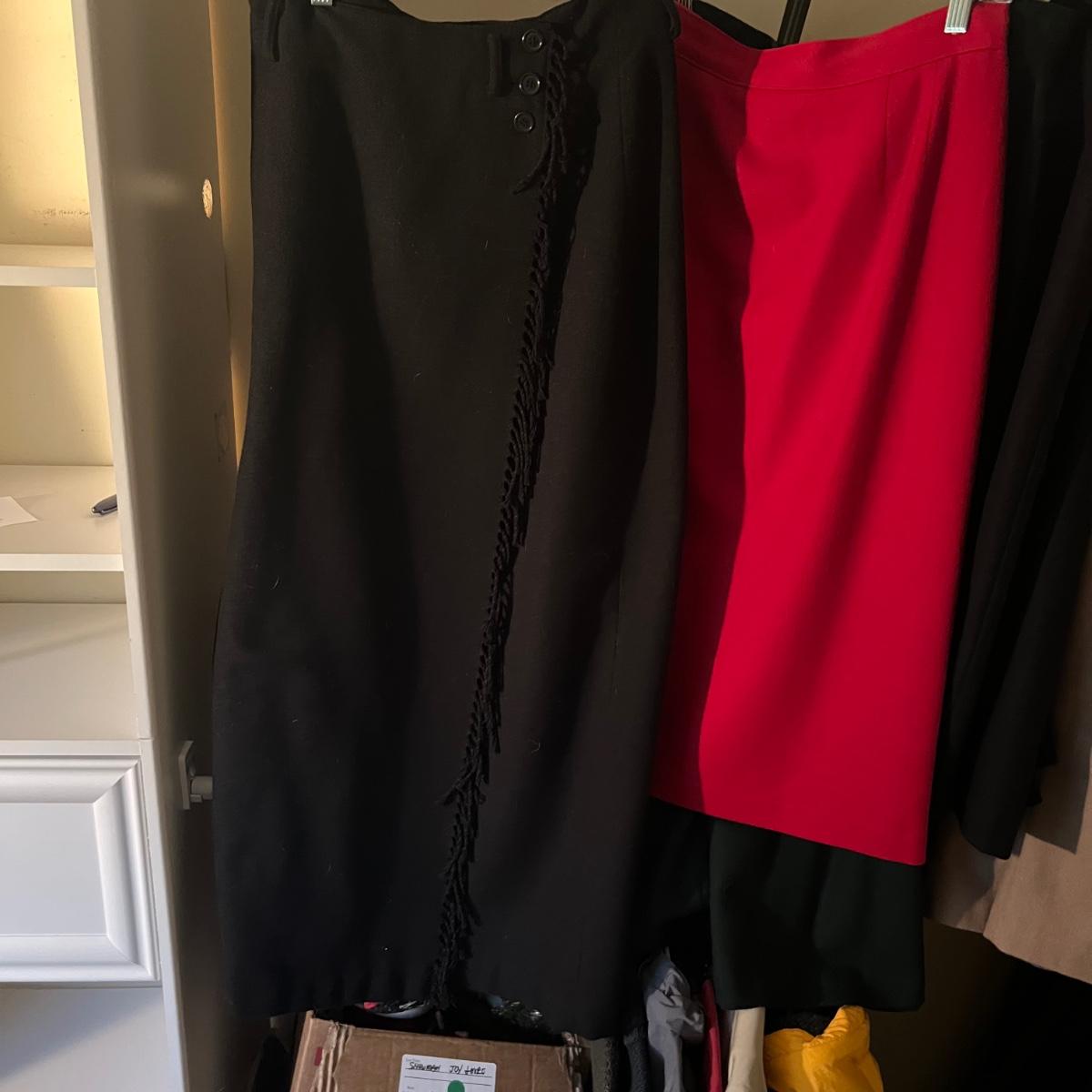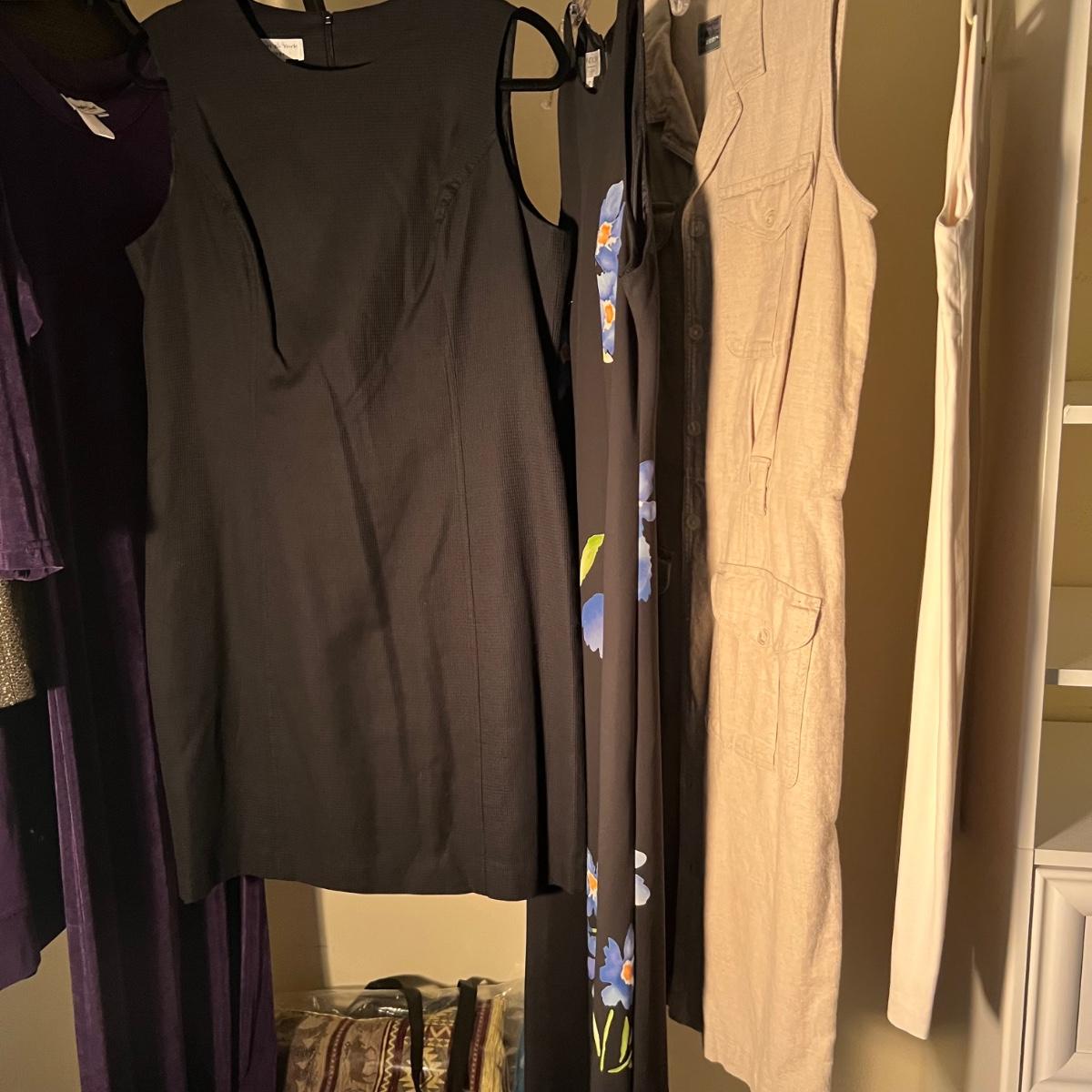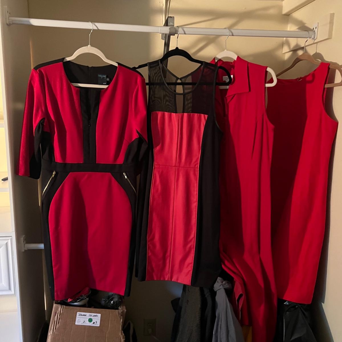 A large assortment of women’s clothing that includes evening wear to pretty summer dressers, satin pants and smart skirts. Sizes vary from small through to large. See pics for brands and sizes. Approximately two pairs of pants, eight skirts, jacket and over 15 dresses that includes a couple of two-piece outfits.