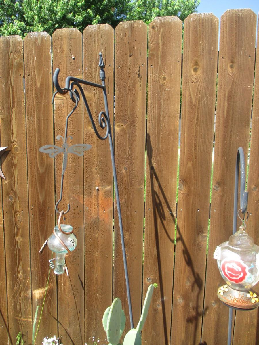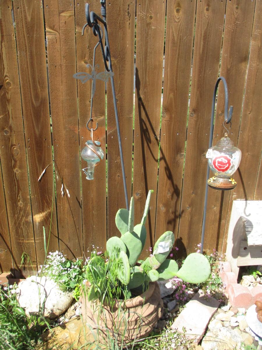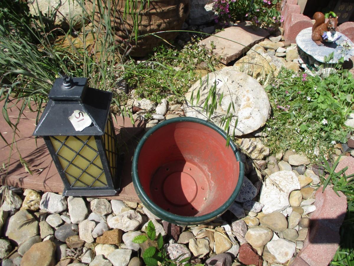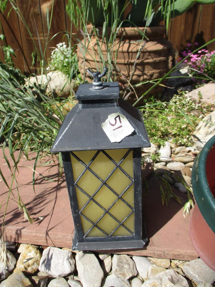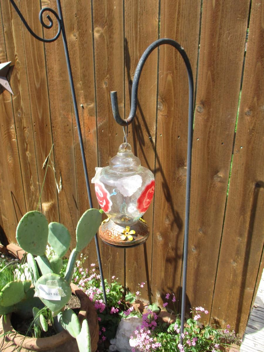 Large planter with cactus, Two shepherd hooks, Lantern. Plastic flower pot. Rocks not included. 6pc. 51