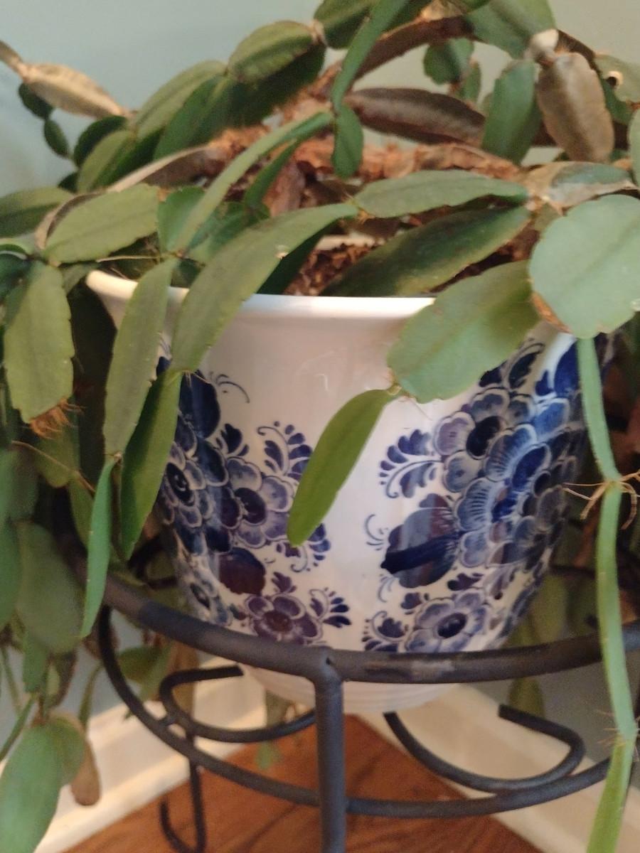 Cactus in Ceramic Pot with Metal Stand