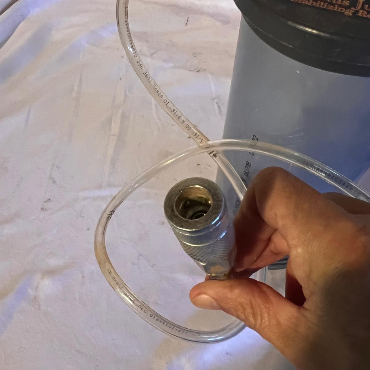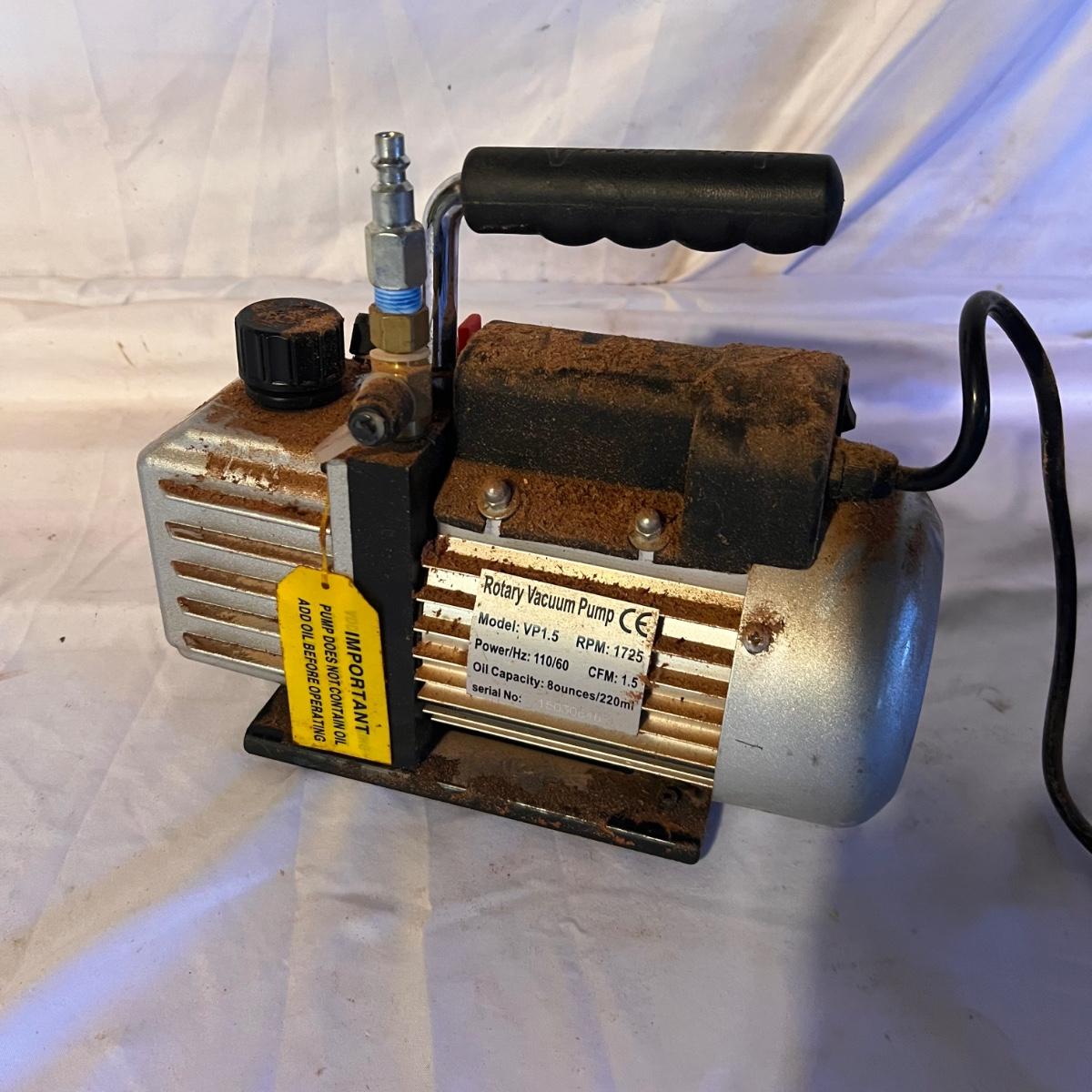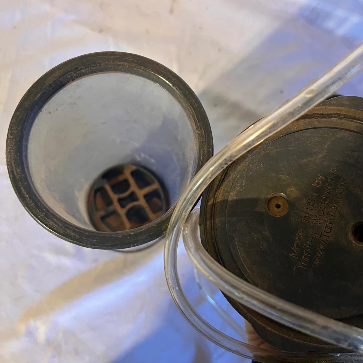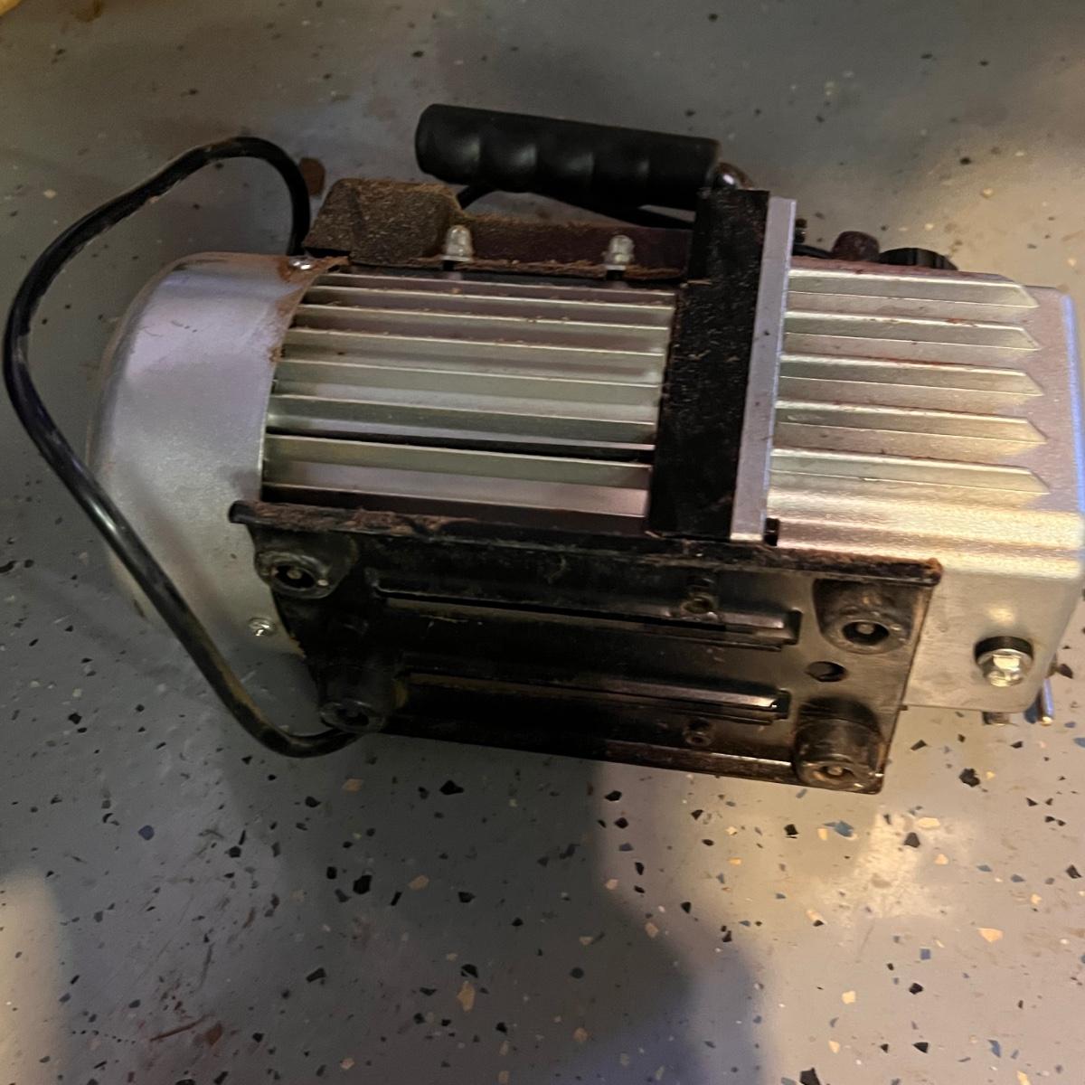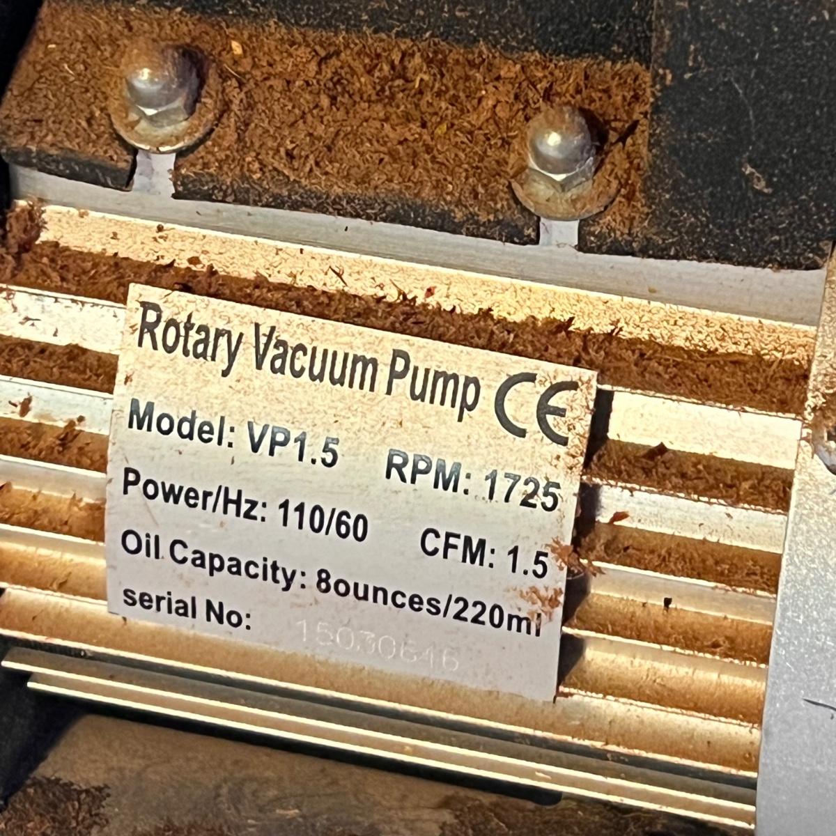 The rotary vacuum pump powered on when plugged in. The chamber for the Cactus Juice (not tested) measures 4.5”D x 11”H.